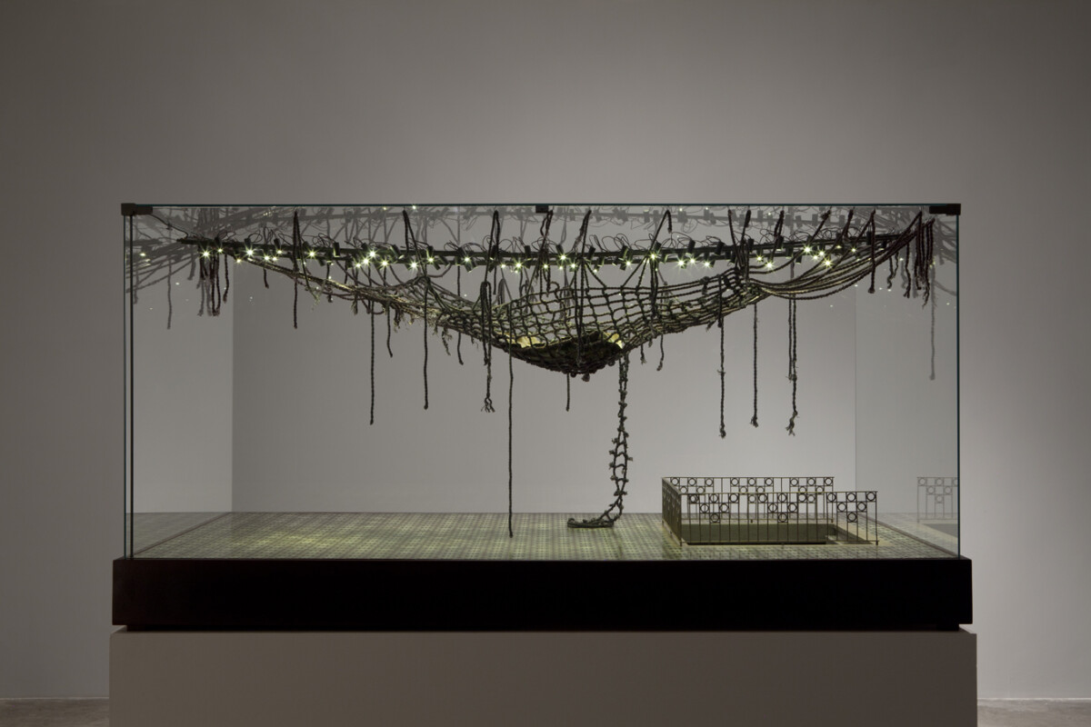 2015 Vidrio, madera, cuerda de algodón, pintura al óleo sobre cobre, bronce, luz LED 85 x 114 x 27 cm