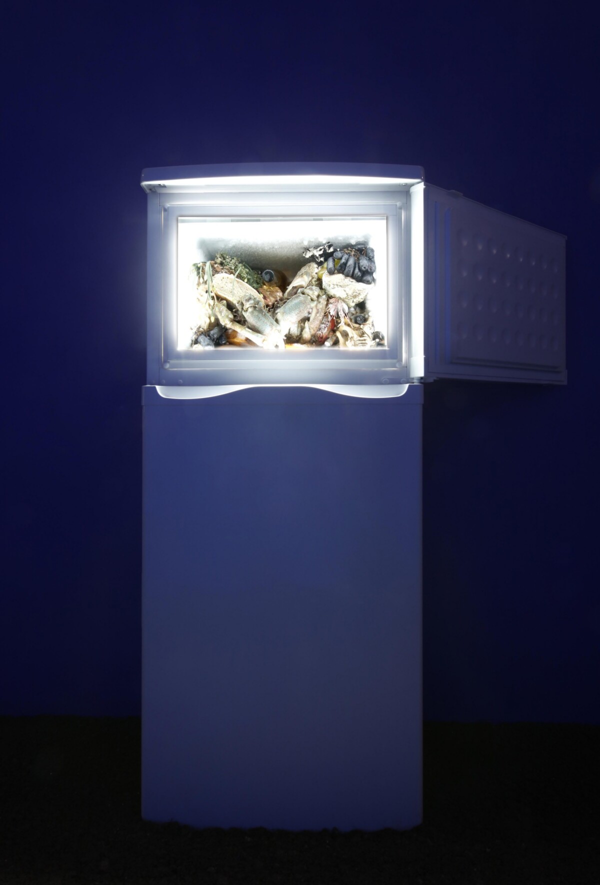2020 Materia orgánica, inorgánica, humana y fabricada a máquina, en freezer. 125 x 96 x 40 cm (Disponible)