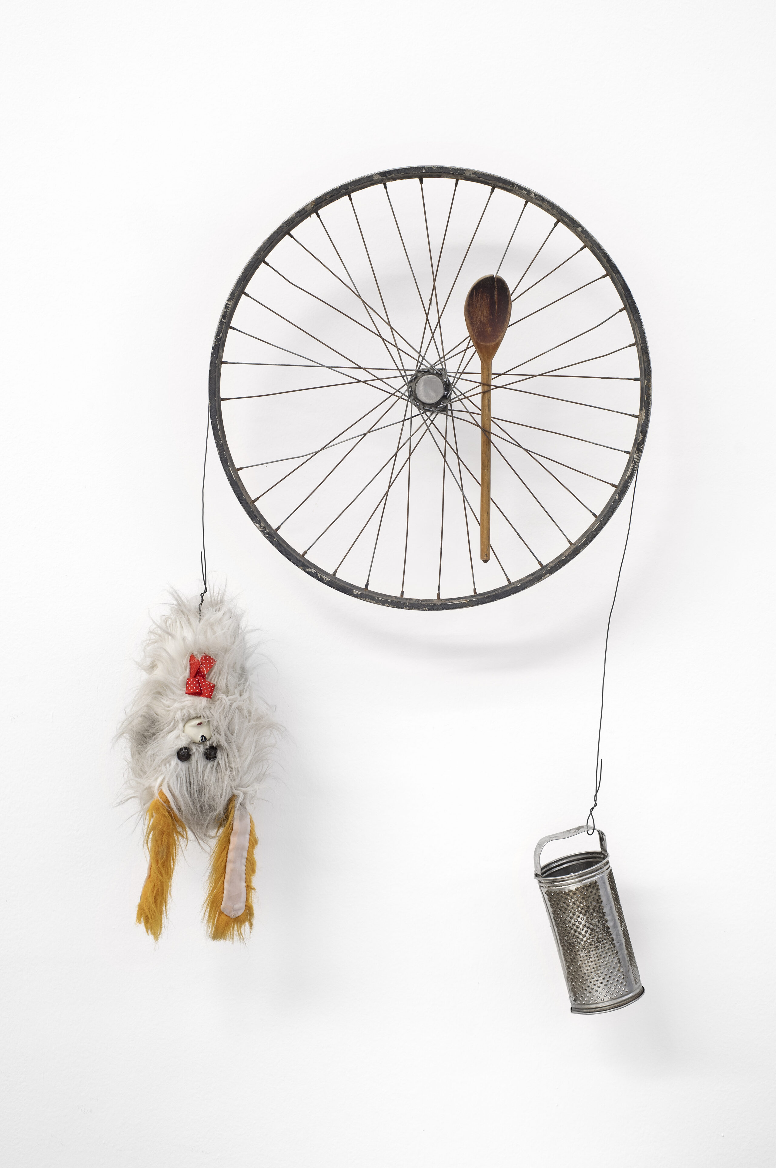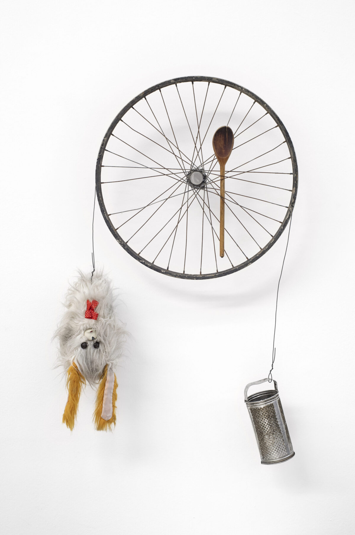 2023 Rueda de bicicleta, cuchara de madera, peluche y rallador 110 x 66 x 16 cm