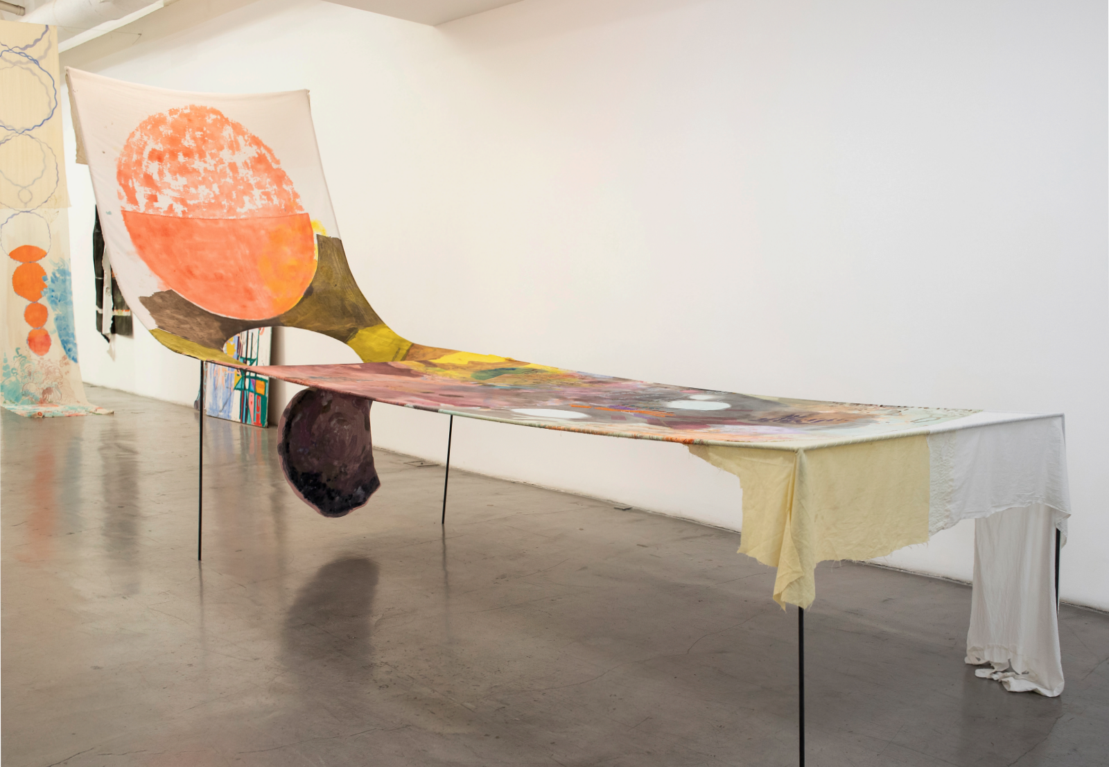 2022 Acrílico y bordado sobre estructura de hierro 249 x 490 x 145 cm