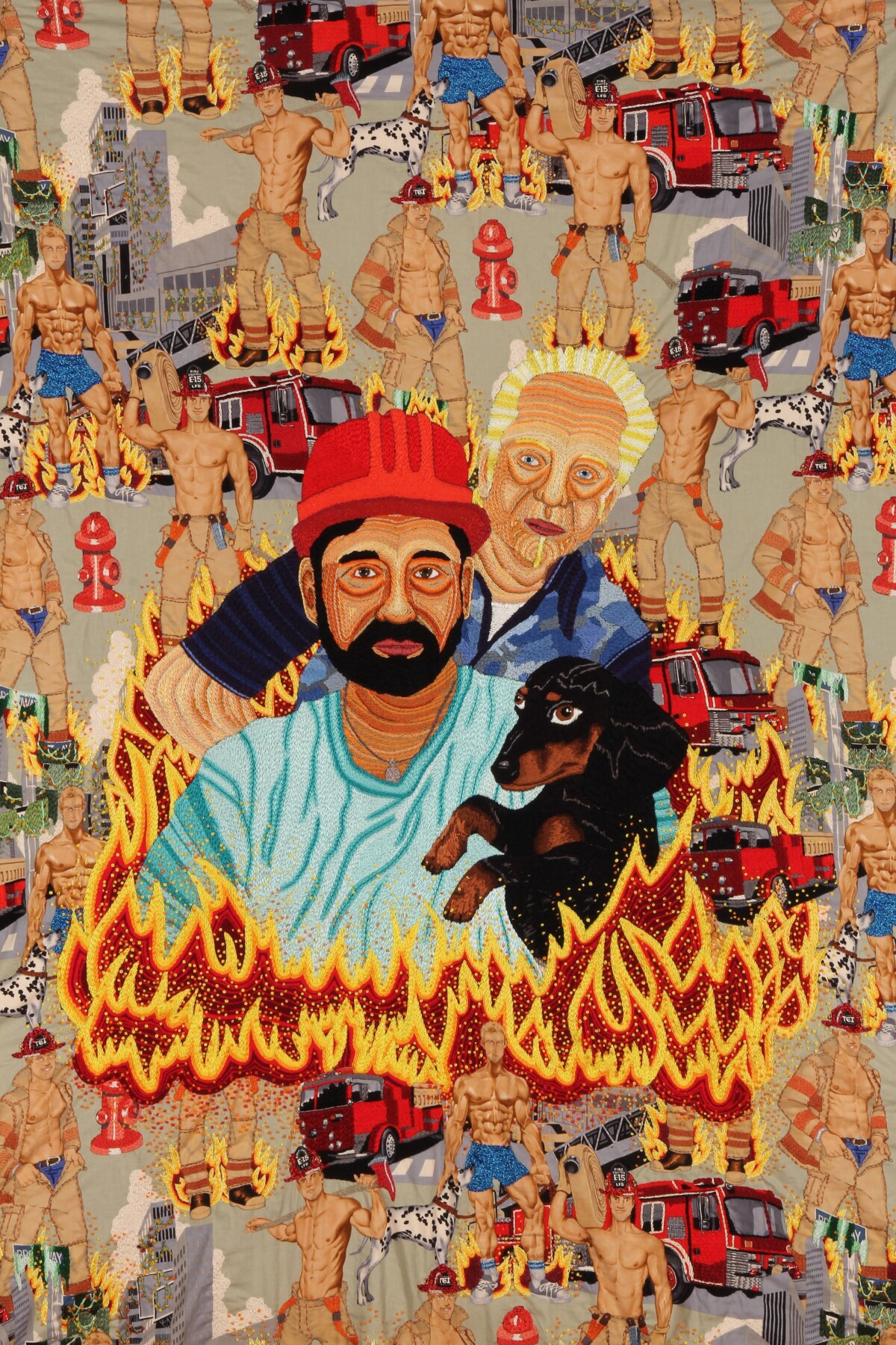 2012 Bordado a mano con hilos de algodón, rayón y efecto joya sobre tela Alexander Henry© 104 x 142 cm