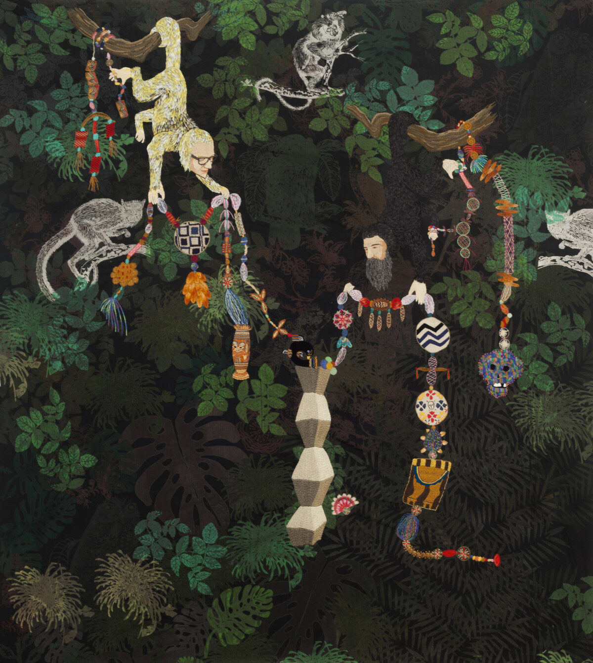 2015/16 Bordado a mano con hilos de algodón, lana, rayón y efecto joya s/tela con estampado manual por serigrafía 180 x 165 cm