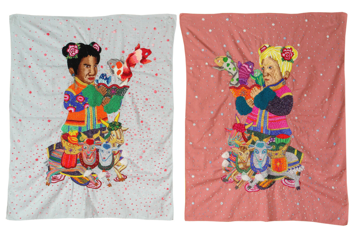 2008 (Díptico) Bordado a mano con hilos de algodón y lurex sobre lino 80 x 110 cm c/u