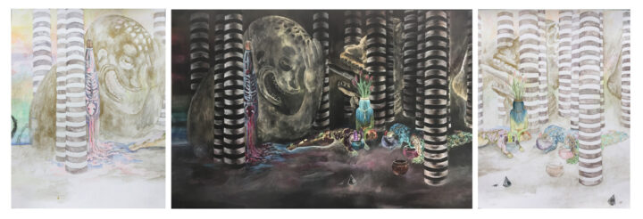 2023 Silicona, óleo, tela y lápiz sobre papel