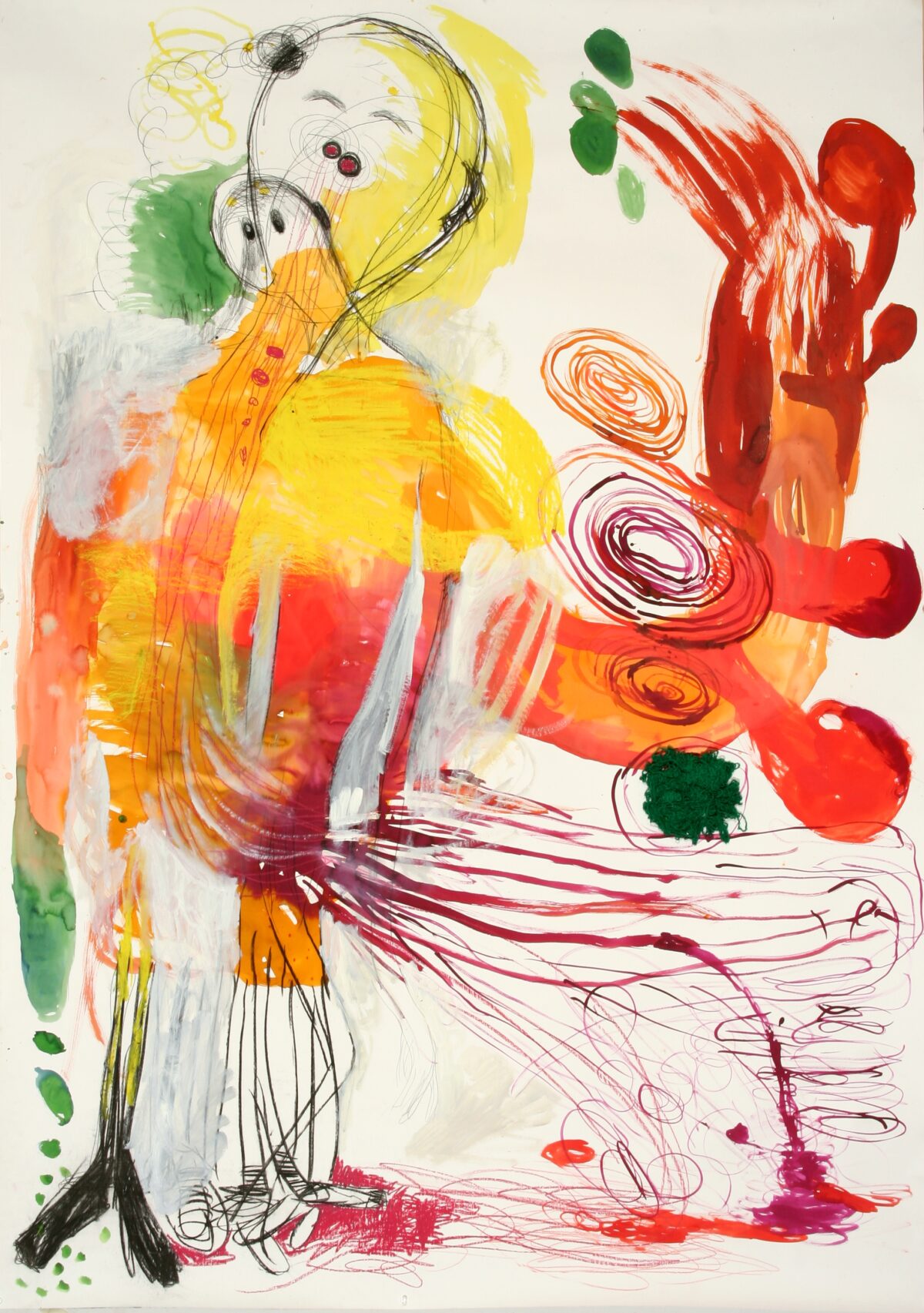 2006 Tinta, oleo, pastel seco e hilado sintetcio sobre papel 210 x 148 cm
