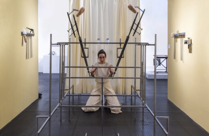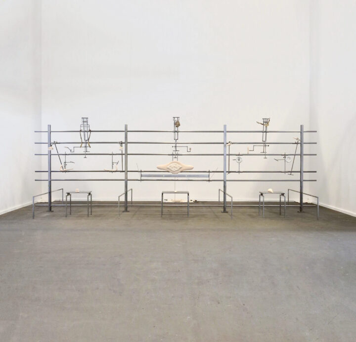 Puppet-me (ejemplo de palo caminante de cinco piernas), performance, ciclo “Situaciones breves. Ritual, acción y poesía”, galería Ruth Benzacar. Buenos Aires, Argentina