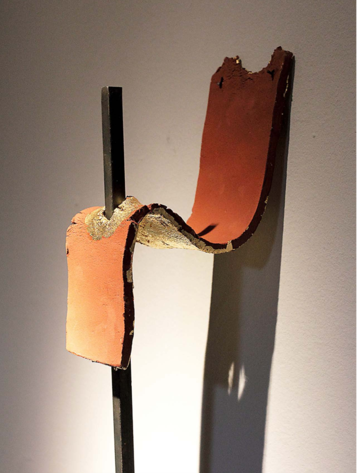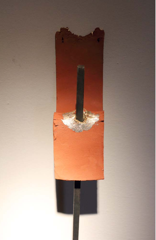 2015 Cerámica pigmentada, dorado a la hoja, hierro, clavos. 160 x 27 x 10 cm (Disponible)