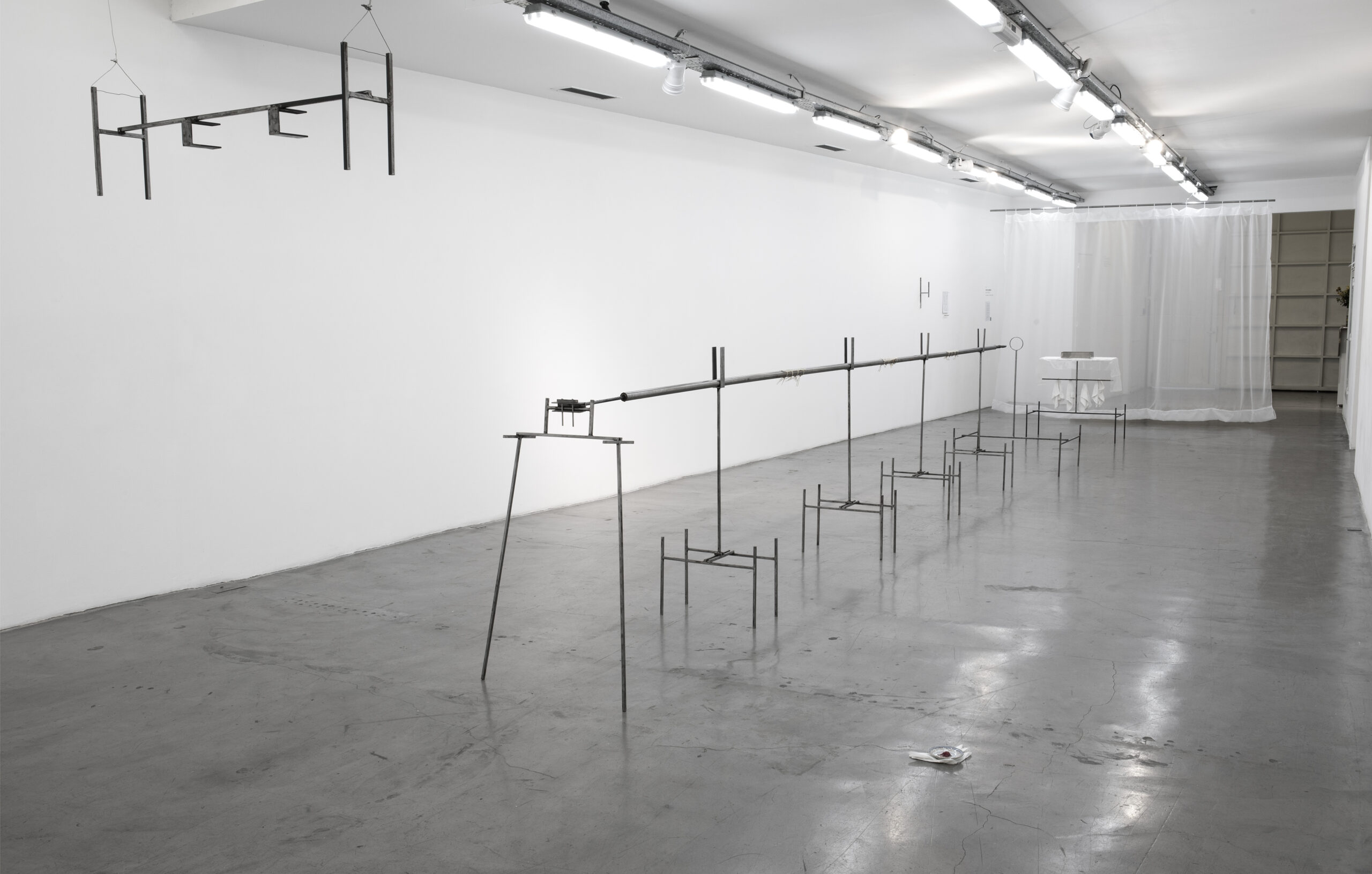 2022 Hierro, cobre, jabón, agua, toallas, cinta dorada 220 x 100 x 1200 cm