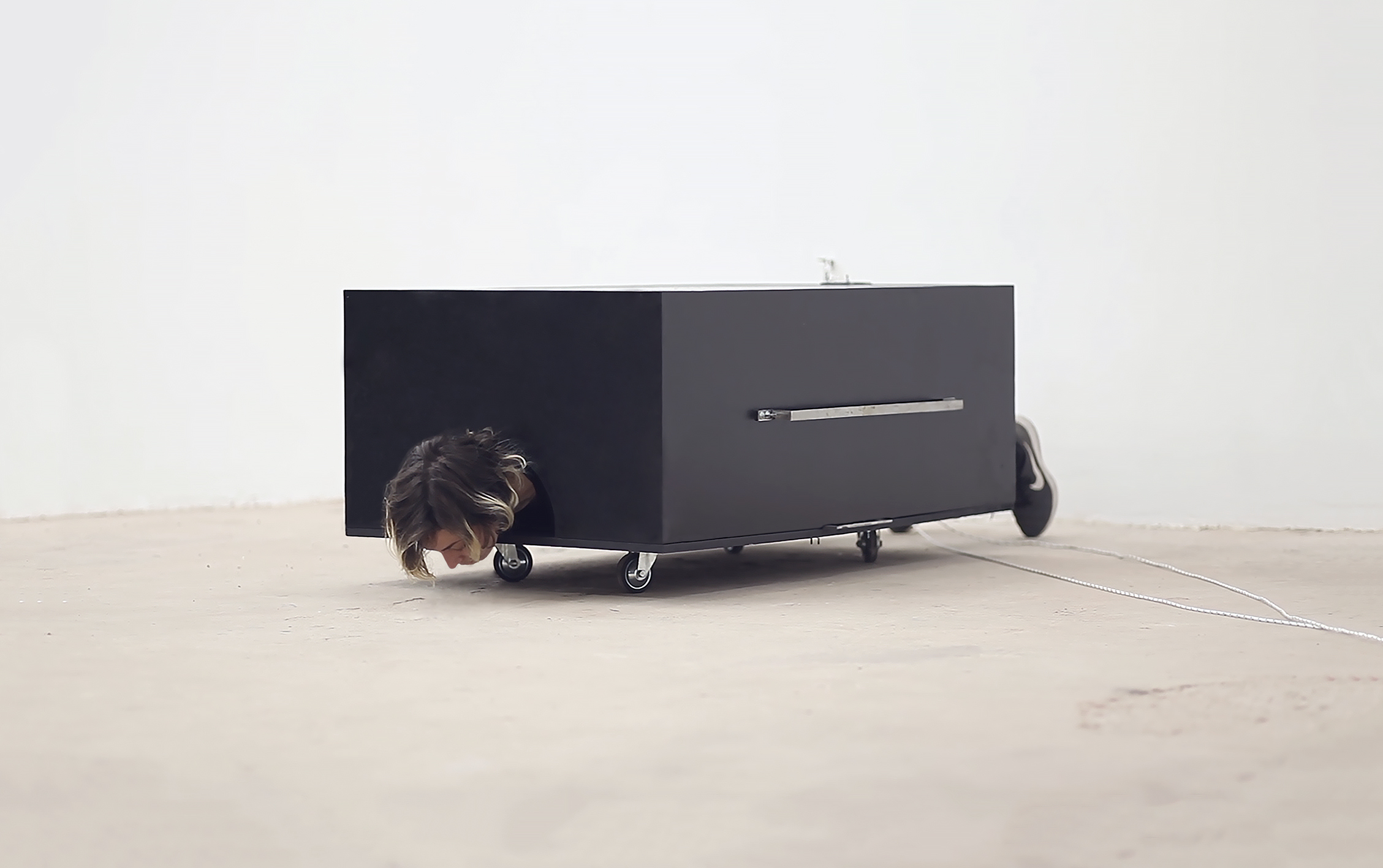 2018 Situación laboratorio Hierro, mdf, barniz sintético, cadena, mosquetones, instrucciones en papel Medidas variables. Duración: 4 horas, cada vez. Munar Arte, Buenos Aires, Argentina.