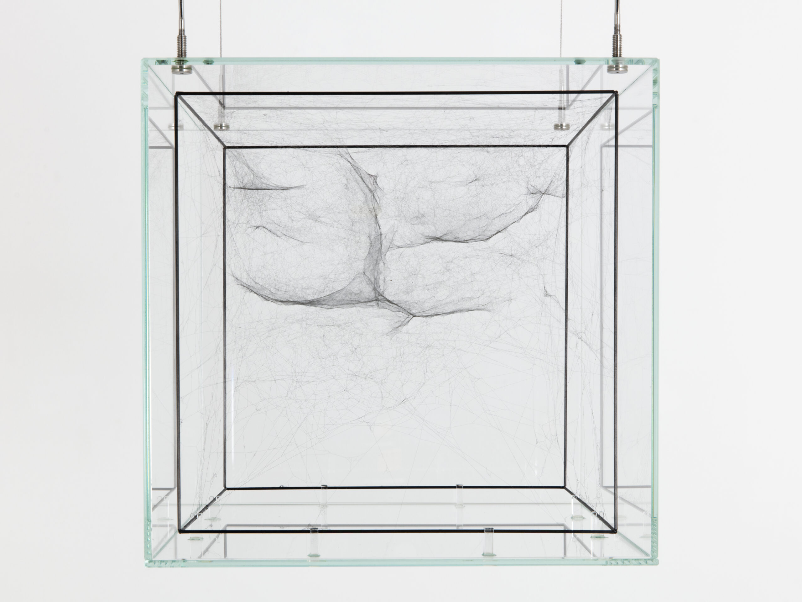 2019 Seda de araña, fibra de carbono, vidrio, tinta, metal 28.6 x 29.1 x 29.1 cm (Disponible)