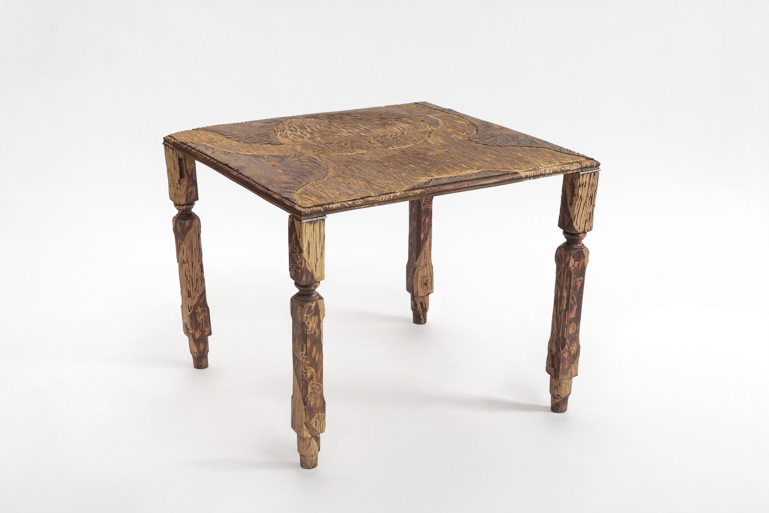 2024 Mesa de madera intervenida y tallada 110 x 100 x 100 cm