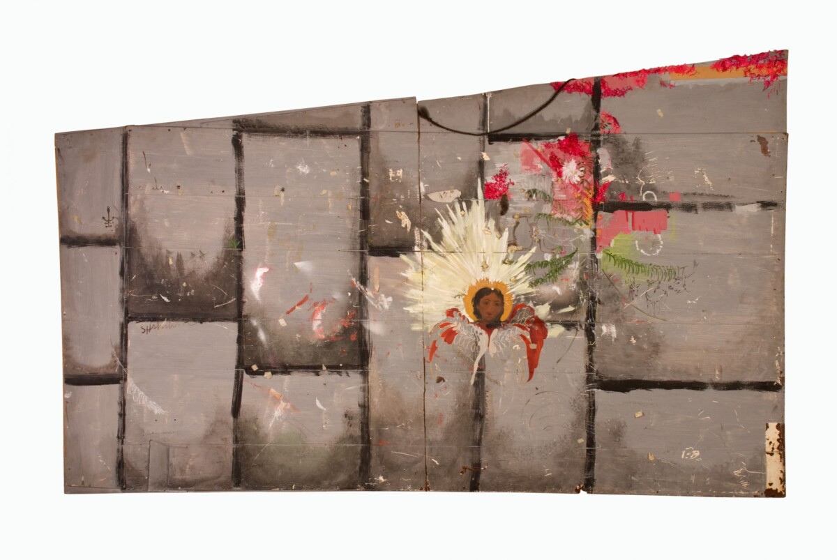2005-2007 Acrylic, oil, paper tape, wool, honeycomb and synthetic hair on wood panel 150 x 220 cm