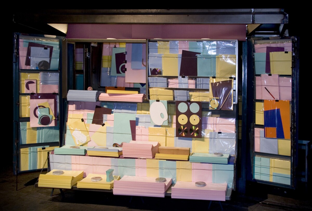 2007 Newspaper and magazine kiosk, newspapers and magazines made of colored paper. Variable sizes