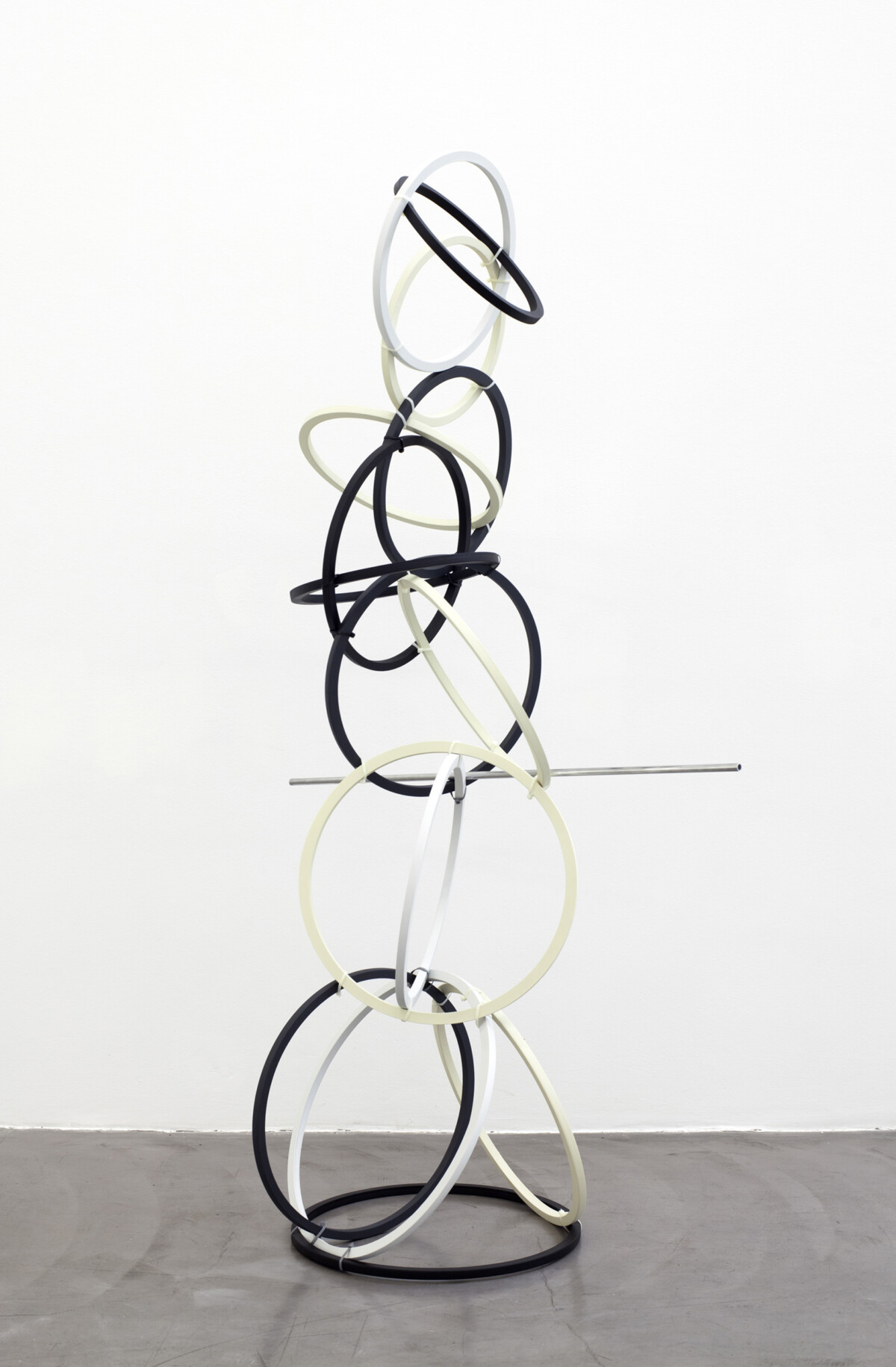 2017 Hoops, aluminum rods, wood and plastic seals 100 x 186 cm
