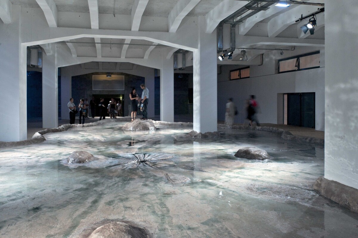2011 Resin, styrofoam, colored water, water pumps 15 x 12 m Installation commissioned for the 11th Biennial of Lyon