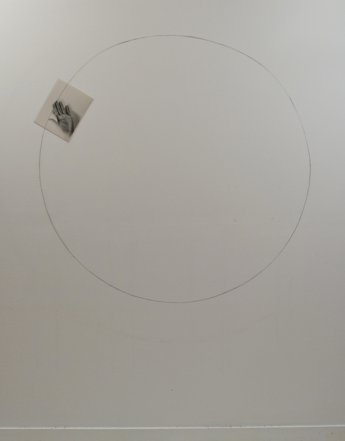 1973-74 Installation of silver gelatin and graphite copy on wall, Image: 20 x 25 cm. Installation: 178 cm diameter (Available)