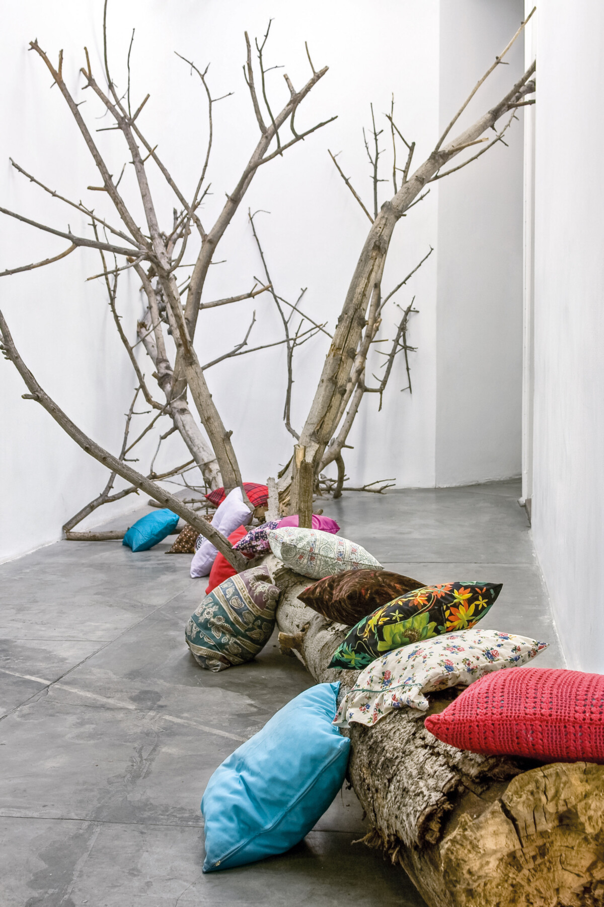 2009 Dry tree and cushions. Exhibition view. (Disponible)