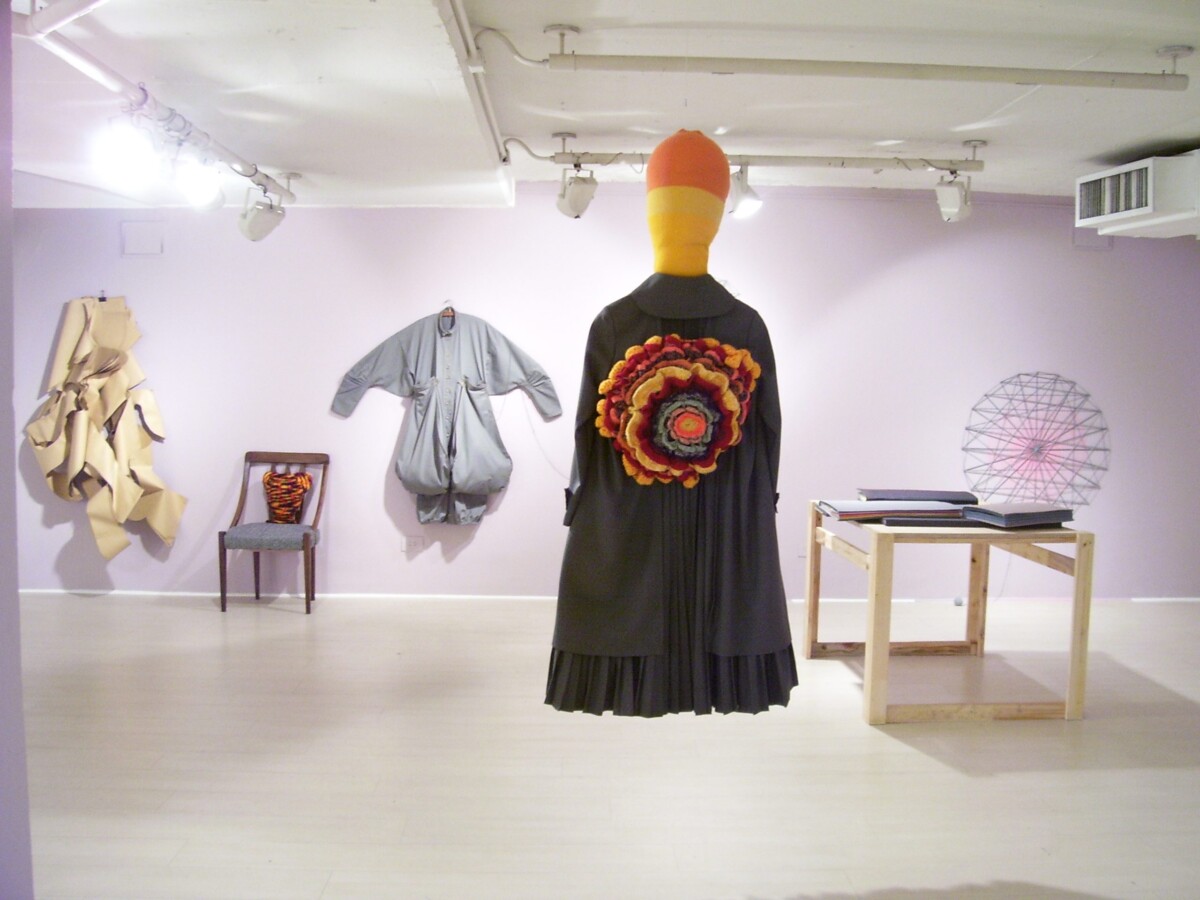 2007 Twill and flower work aprons, hand-woven on the back. Room view in at Ruth Benzacar Galería de Arte.