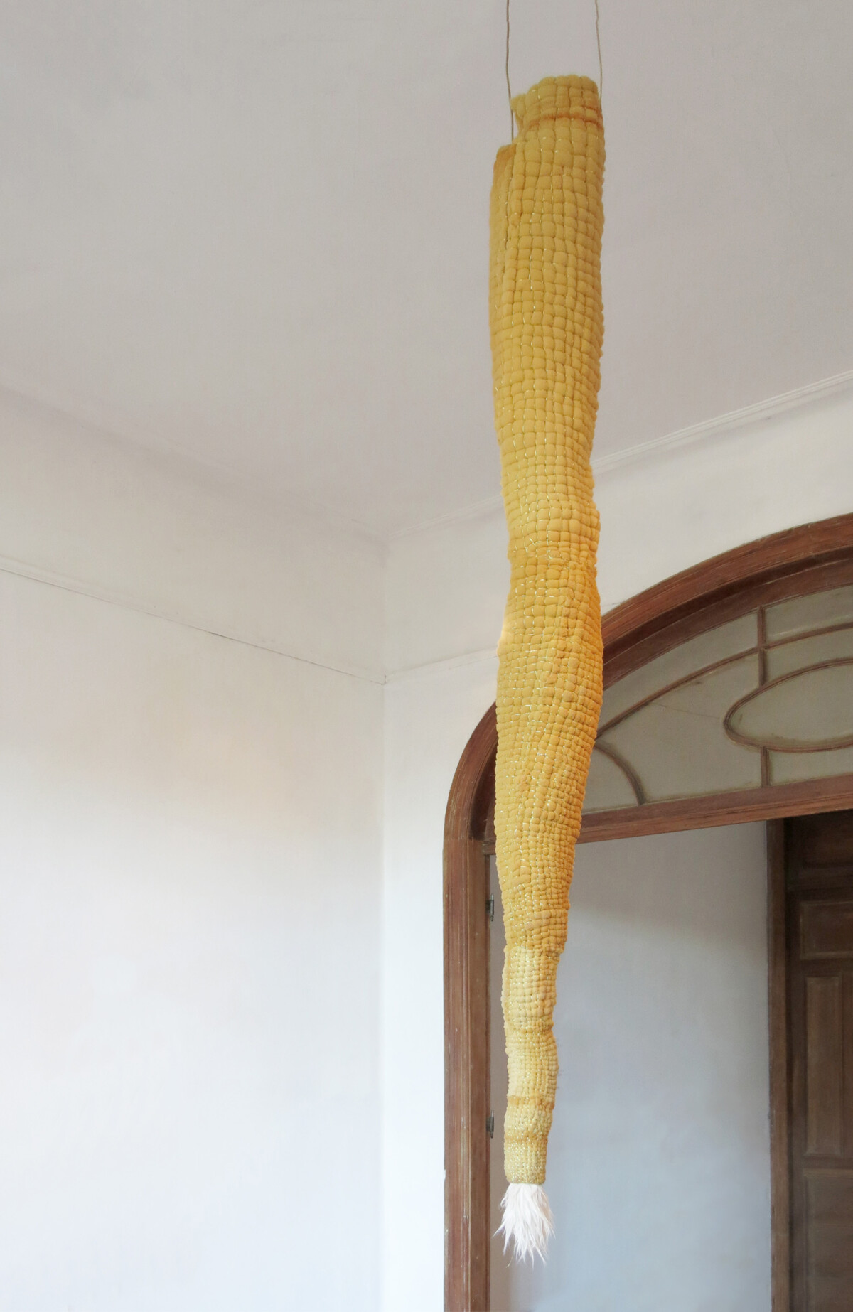 2015 Foam from old mattress, golden thread, copper, synthetic leather. 230 x 32 x 32 cm