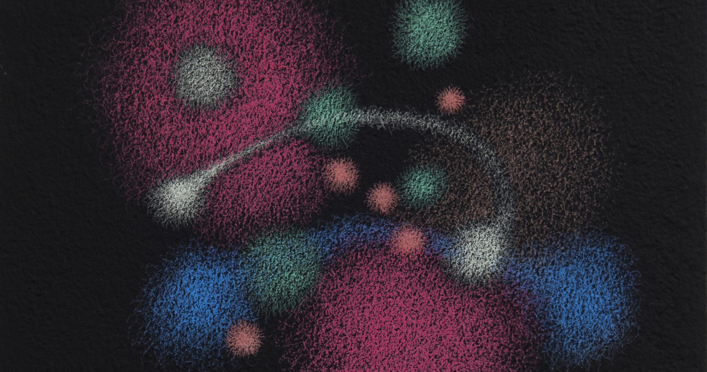He goes to the workshop for a while and dedicates himself to the concentric rubbing of a color, with the pencil well sharpened at the beginning, to enter the valleys of the paper. As if he had all the time in the world, or as if his life consisted in drawing that color. Very softly. Without thinking about the next one. He doesn’t care if a seven-color drawing takes him seven days, or seven months.He moves forward conscious of each mini stroke, letting the shapes appear.