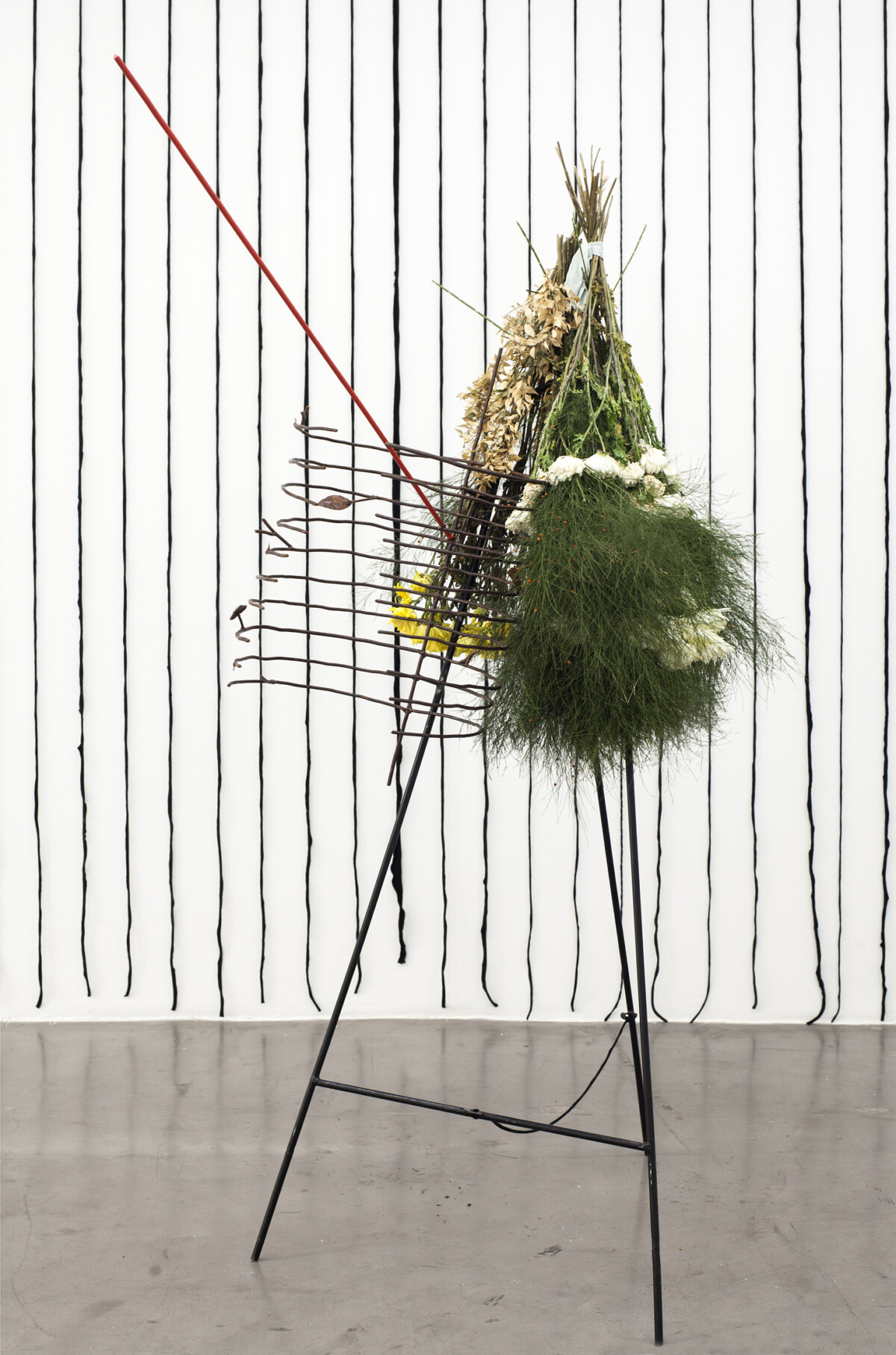 2019-2020 Iron, black and red enamel, floral arrangement of white and yellow chrysanthemums, asparagus 192 x 160 x 90 cm (Disponible)