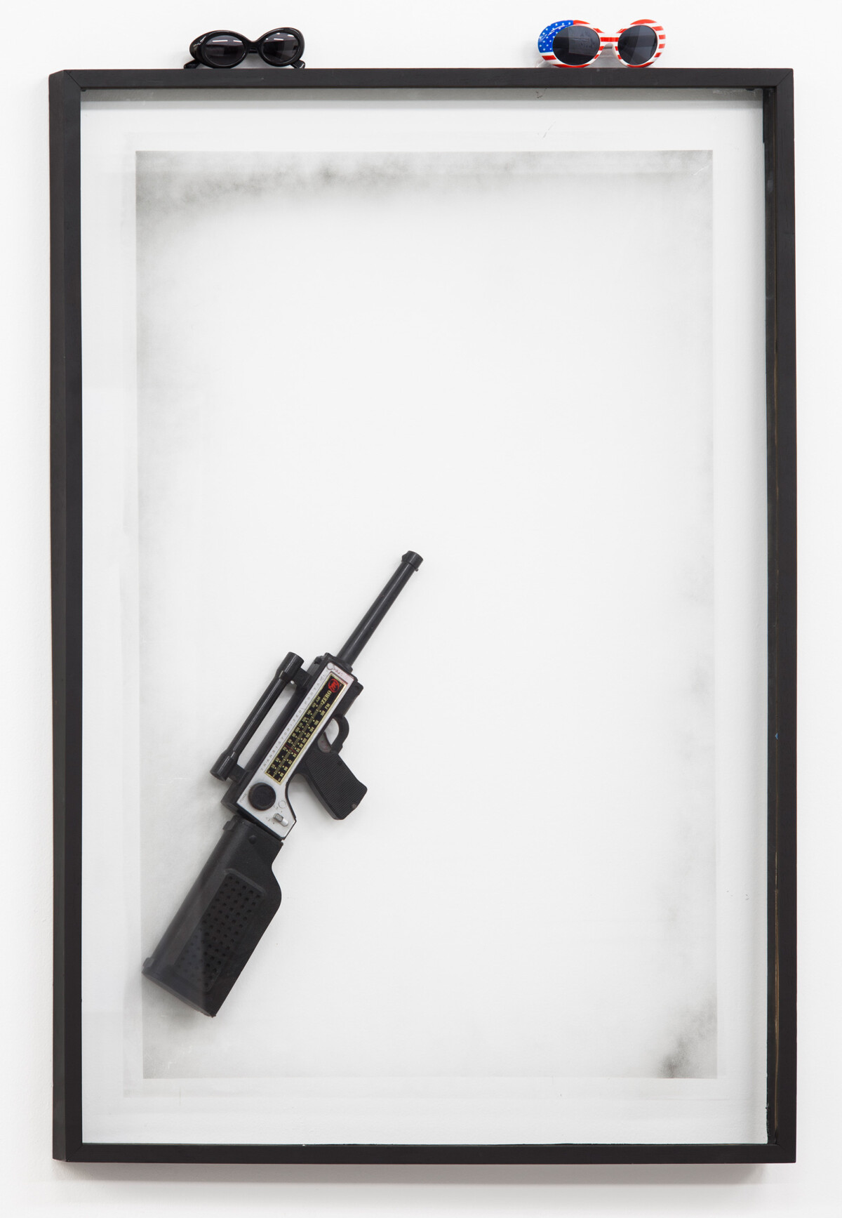 2019 Radio machine gun toy, plastic eyeglass frame 80 x 60 cm