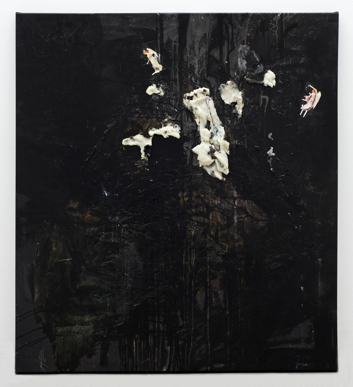 2019 Oil, resin, and decals on canvas, U-shaped furniture Variable dimensions