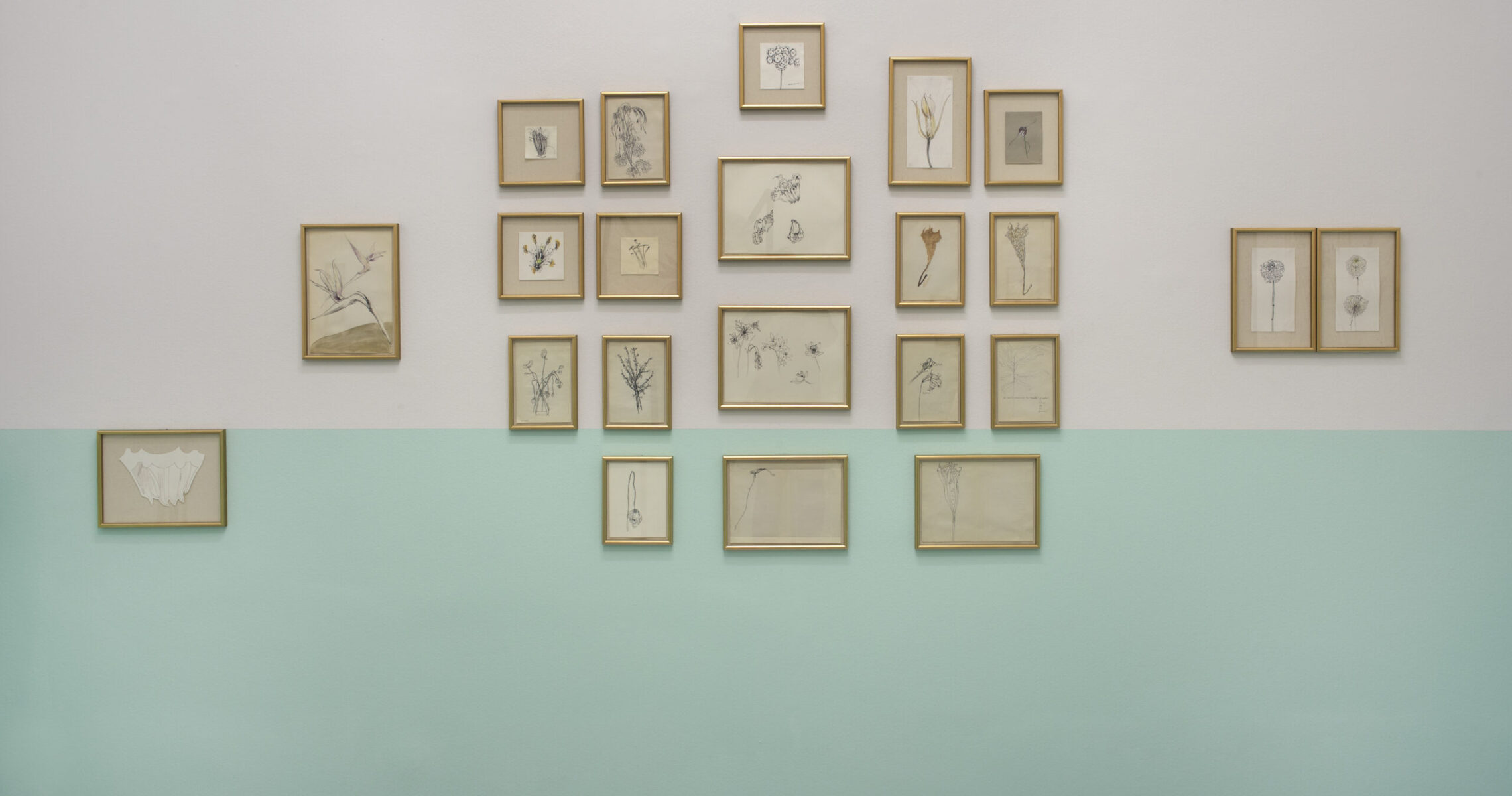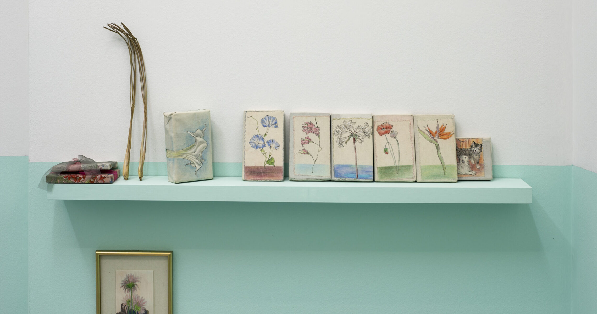 A singular tone—ranging from red to burgundy—threads through much of her work, in infinite variations: her painted lips, her long fine hair, even the pencil holder in her studio. If I follow that thread—like someone going out on a limb—I’d say that more than artworks, what has entered the gallery today is an entire artistic practice, and perhaps, a life.