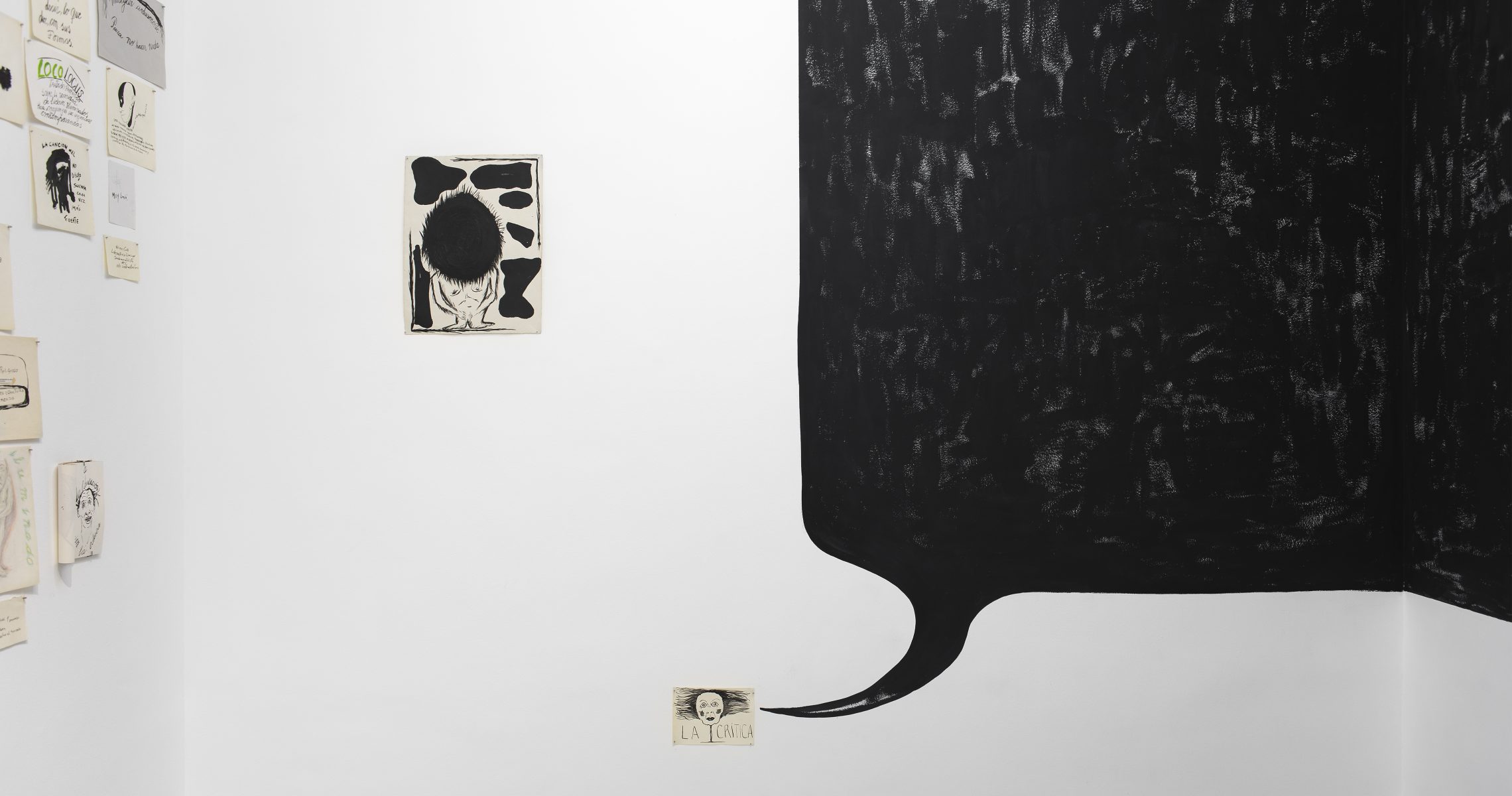 Tools such as humor, confusion, vagueness, questioning, the unsaid, contradiction, and the intelligence of common sense make up the variety of approaches through which he builds his grammar and an artistic language that provokes. Between his drawings and his texts stands the artist himself—like a jester—mocking everything at once.