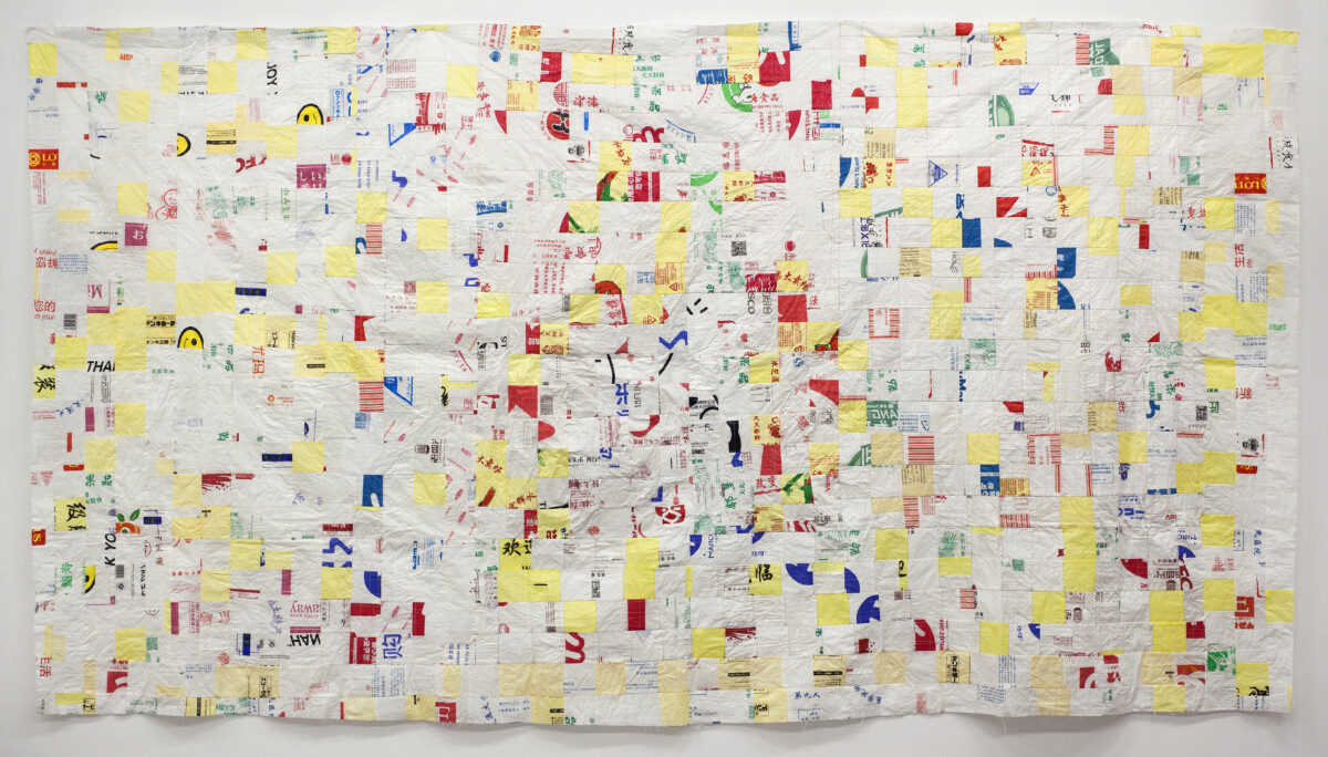 2018 Patchwork con bolsas de plástico sobre tela Patchwork with plastic bags on fabric 184 x 340 cm (Disponible)