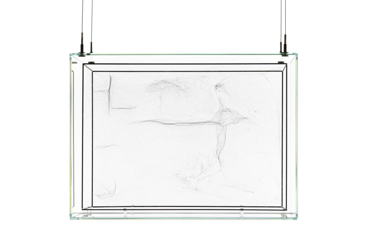 2021 Fibra de carbono tipo seda de araña, vidrio, acrílico y tinta 29 × 39 × 29 cm