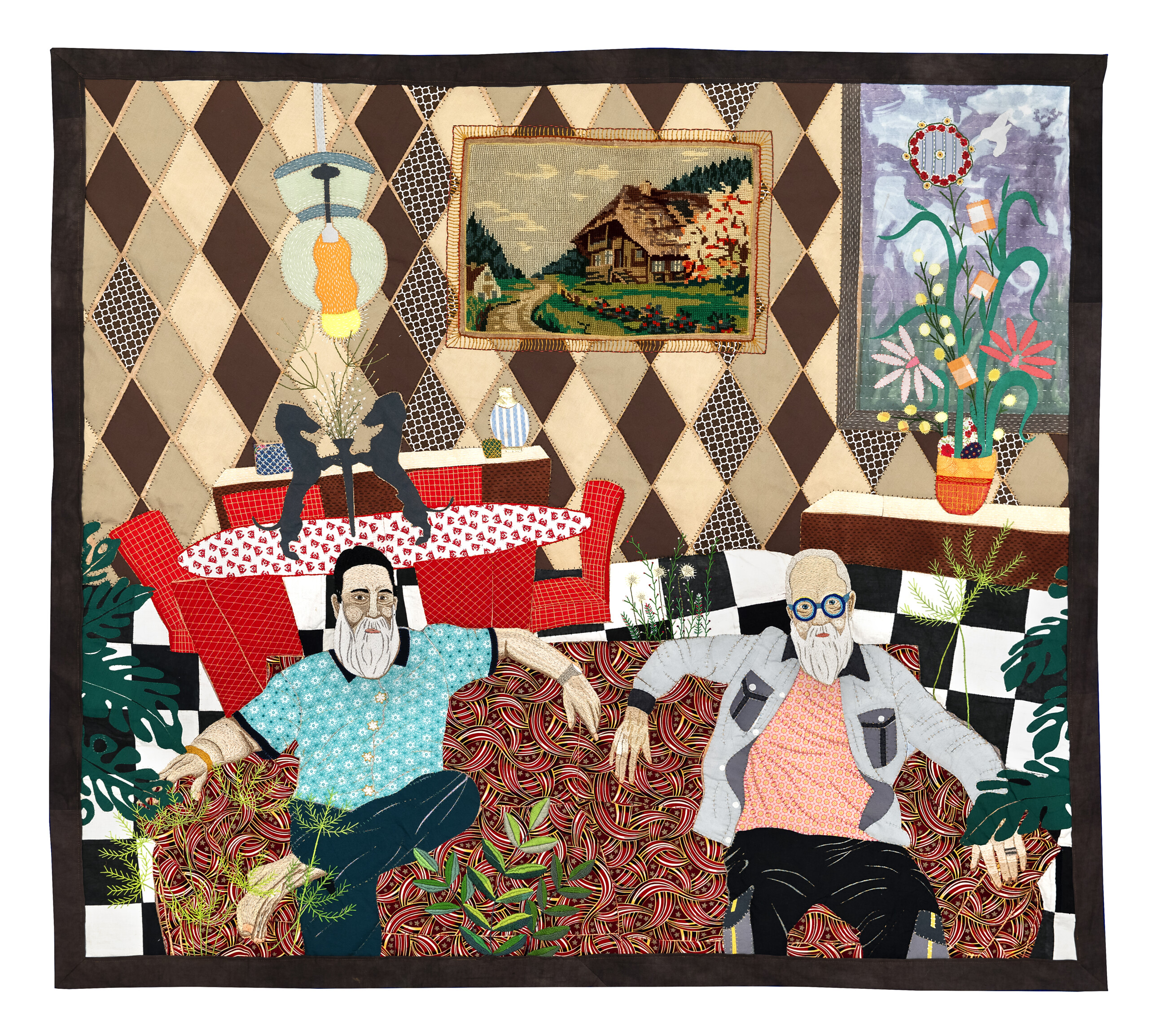 2025 Bordado a mano con hilos de algodón, patchwork, apliqué y quilt s/tela de algodón teñida 156 x 174 cm