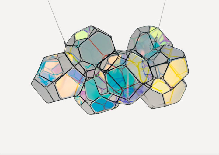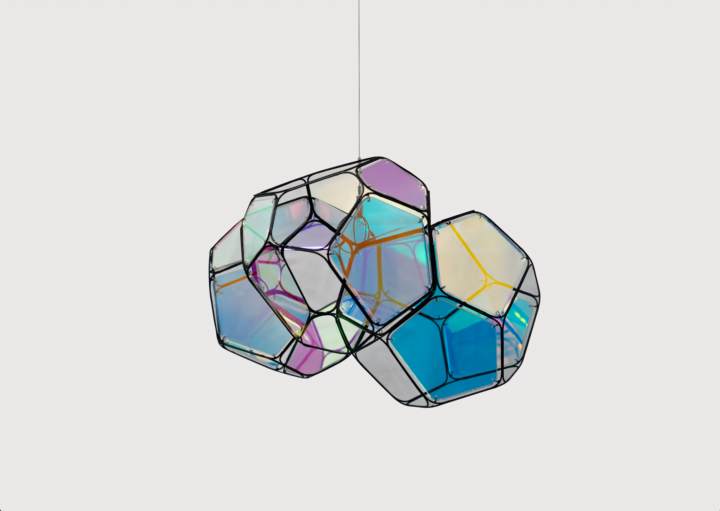 2026 5 módulos, aleación de acero, paneles iridiscentes, línea 27 × 27 × 17 cm