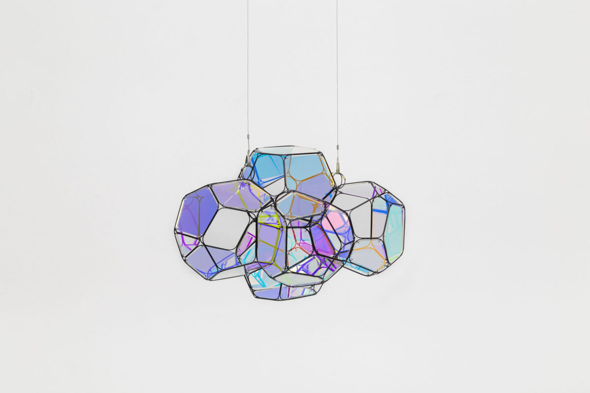 2026 5 módulos, aleación de acero, paneles iridiscentes, línea 27 × 27 × 17 cm