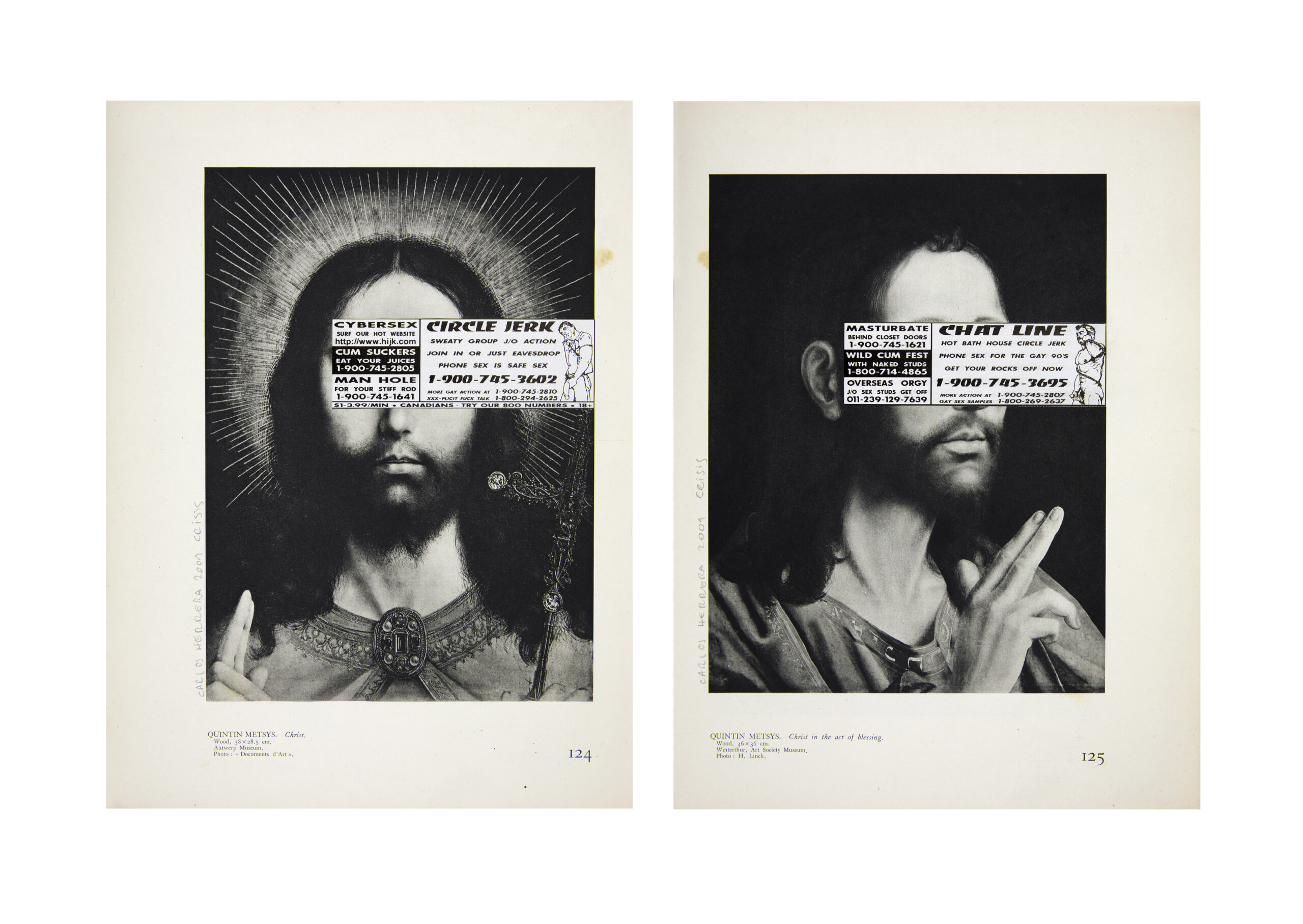2001 Collage: Reproducciones de imagenes religiosas y recortes de revista pornográfica 32 x 23,5 cm