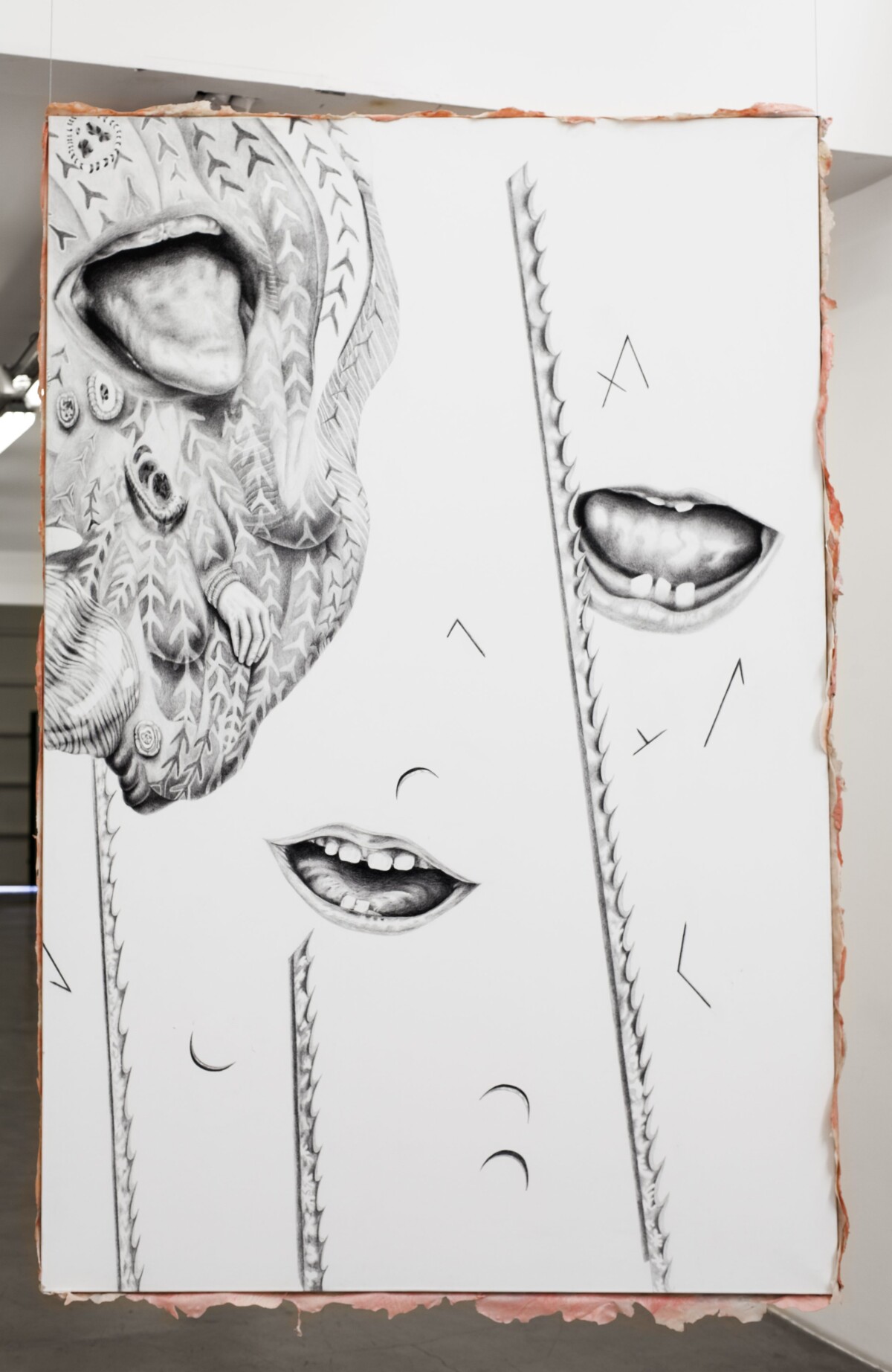 2018 Lápiz sobre papel, silicona, oleo y tela. 224 x 150 cm. (Disponible)