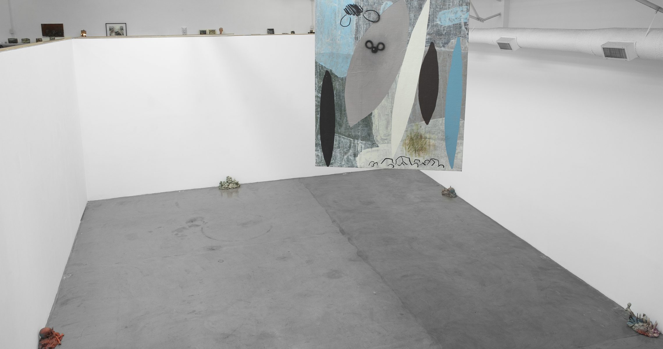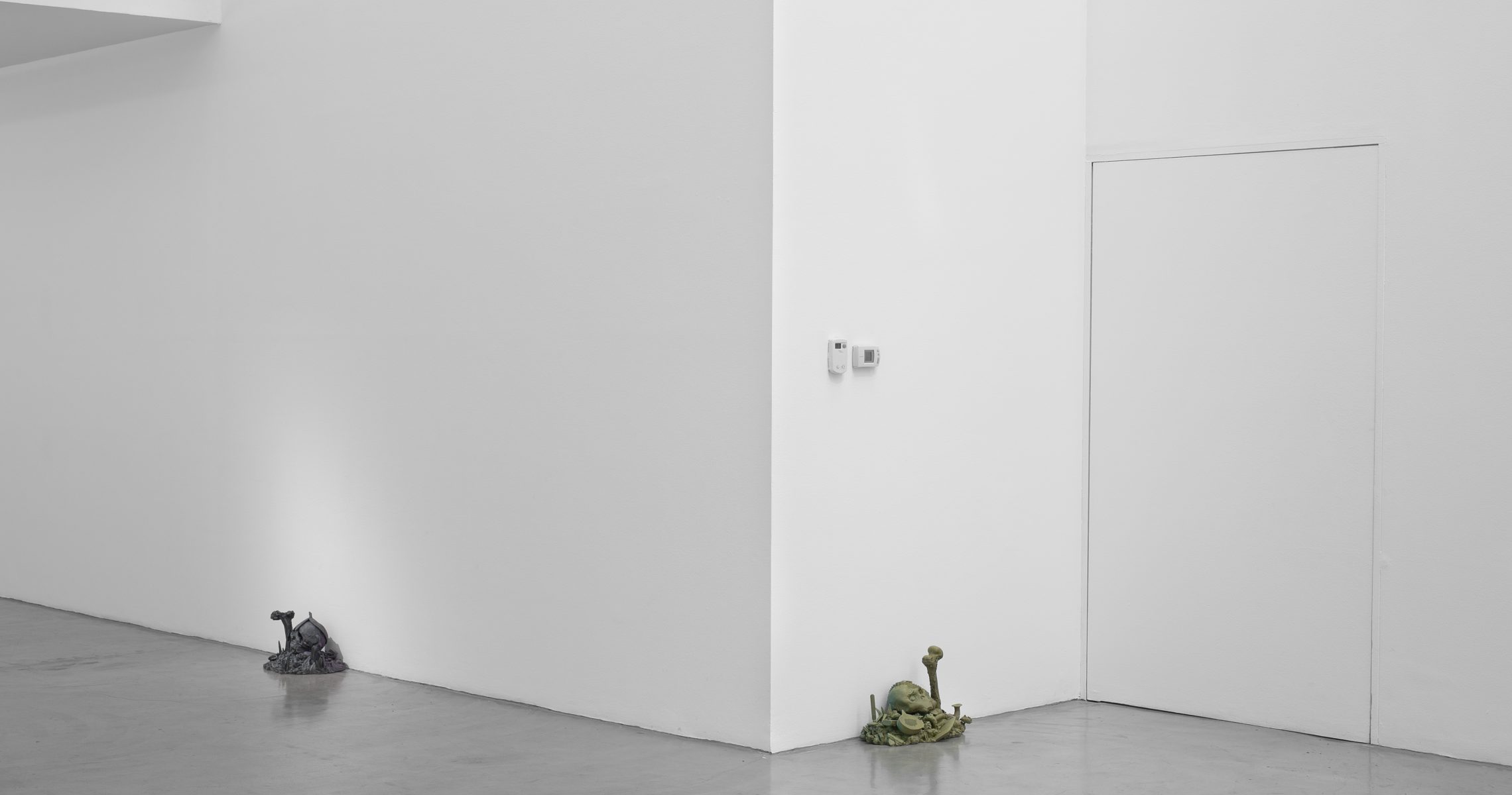 La exposición se compone de nueve piezas escultóricas de aluminio pintado y seis pinturas realizadas en óleo, acrílico e impresión UV sobre arpillera. Todas las piezas están emplazadas dentro del espacio expositivo a modo de señalar sus zonas limítrofes: el encuentro entre la pared y el piso, entre el suelo y el subsuelo, y entre la sala expositiva y el espacio de oficina donde se gestionan diariamente las actividades comerciales de la galería.