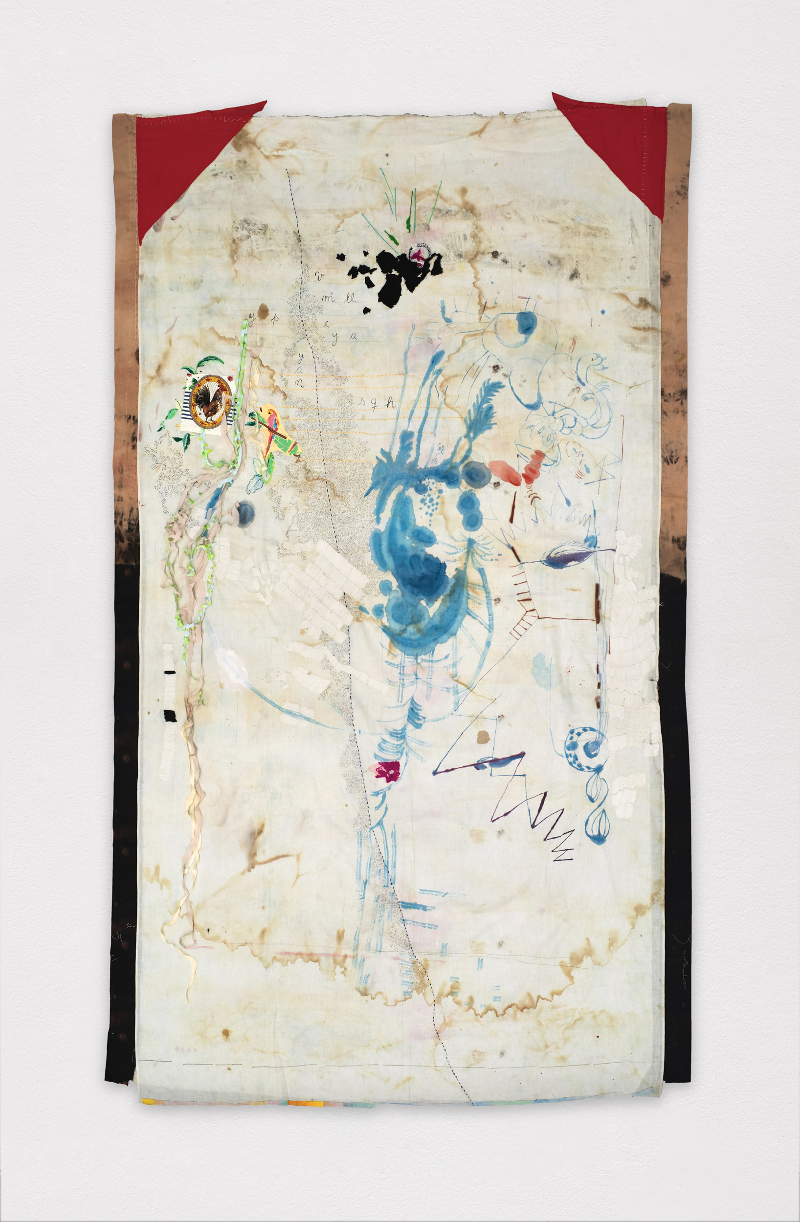 2012 Acrílico, lápiz, bordado sobre tela de algodón, manchas de humedad y apliques de tela 272 x 150 cm