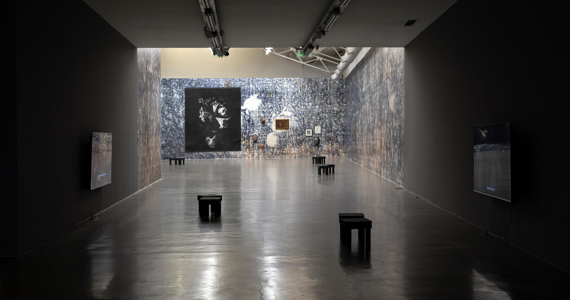 Aquí en esta exposición se presenta una pieza de una serie que recupera siete óleos de su madre, Carmen Gómez Raba. Cada pintura se integra con un bordado, una pieza de cerámica (realizada por la hija y nieta, Rocío Gallardo) y dibujos. El montaje no es sobre el muro, meramente, sino sobre otro lienzo que abarca la sala, desde la complicidad histórica de crear el contexto para que la pintura materna se inserte, un ploteo que es en sí un pequeño enigma visual de complejidades difusas.