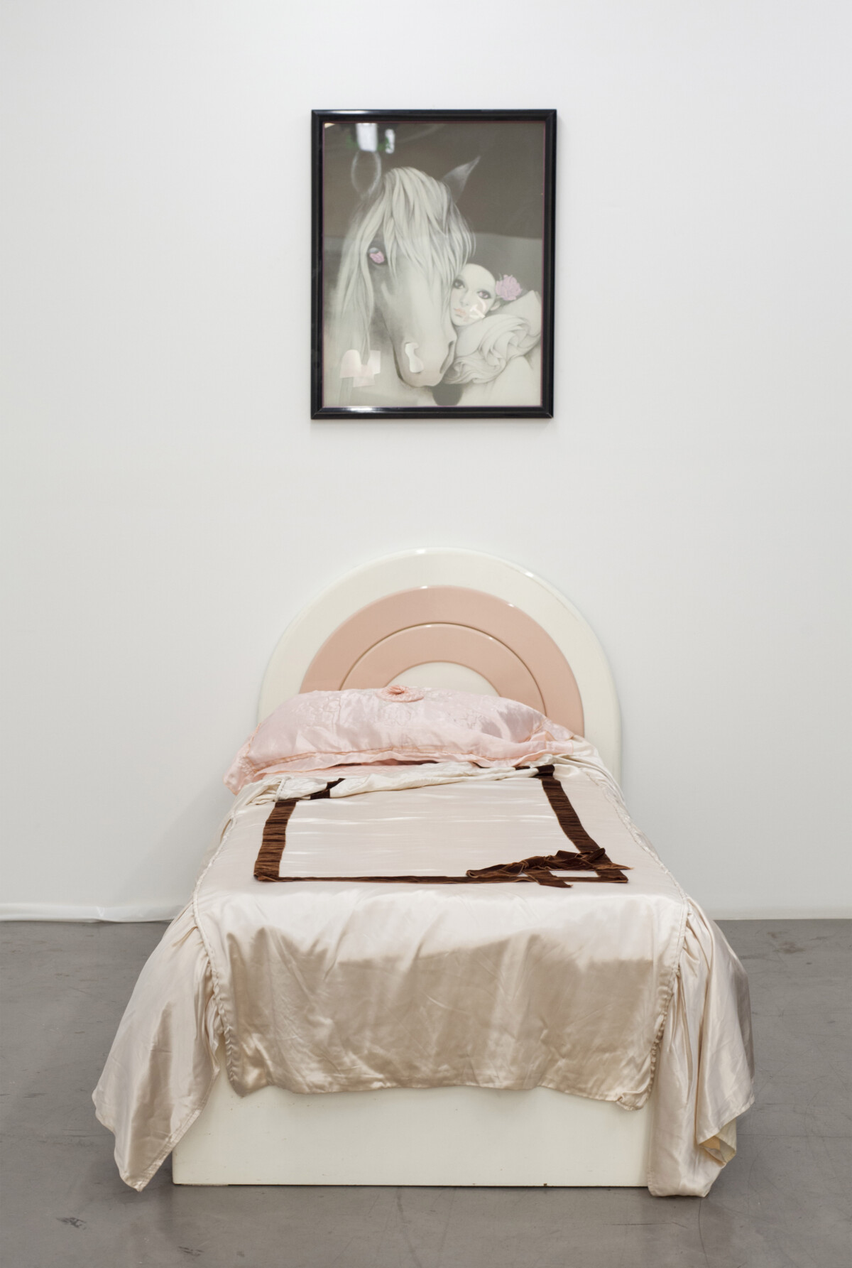2020. Cama, cuadro de caballo, mantas. Medidas variables. (Disponible)