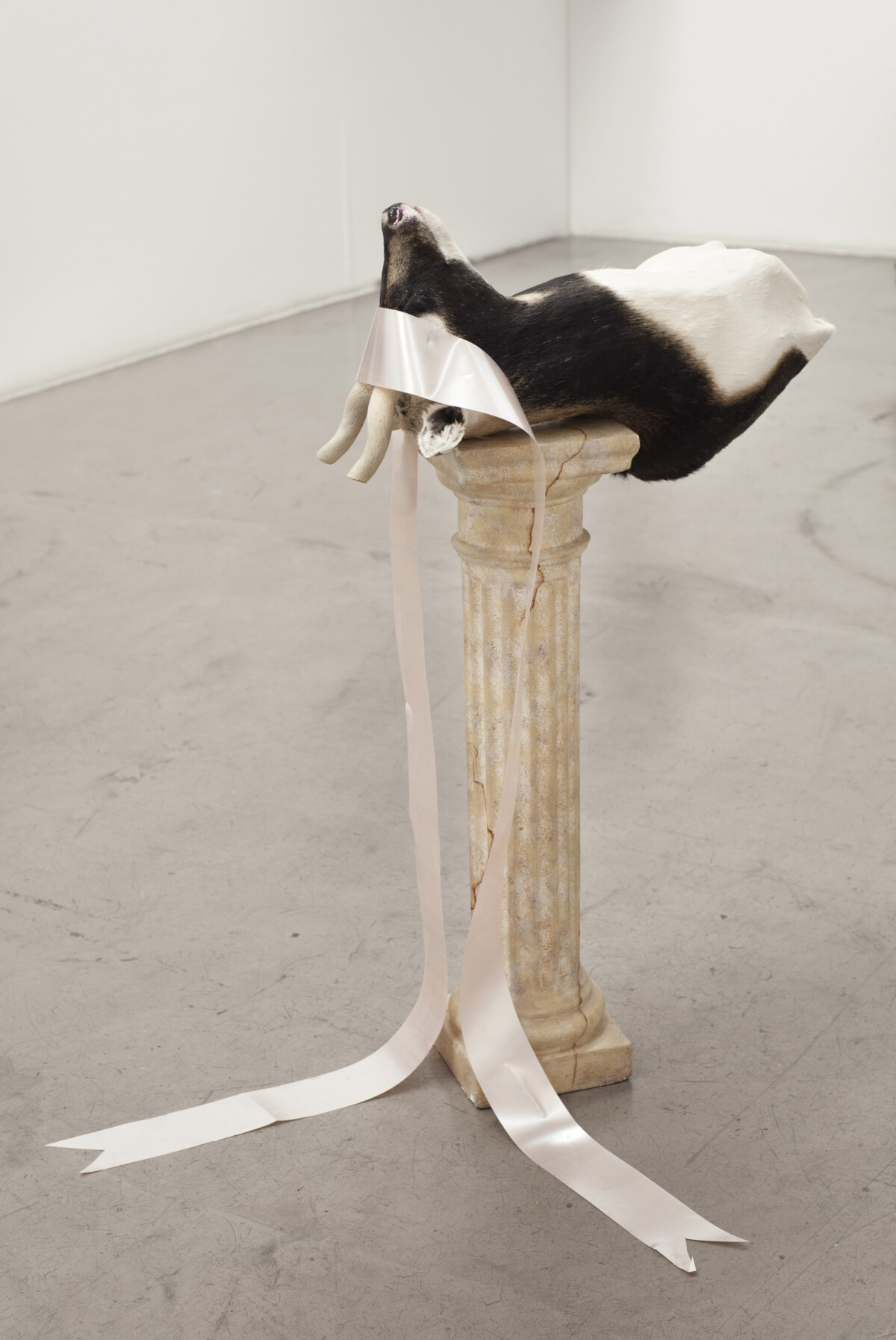 2020 Dos o tres columnas griegas pintadas, cabeza de ciervo, cinta, brillantina Medidas variables (Disponible)
