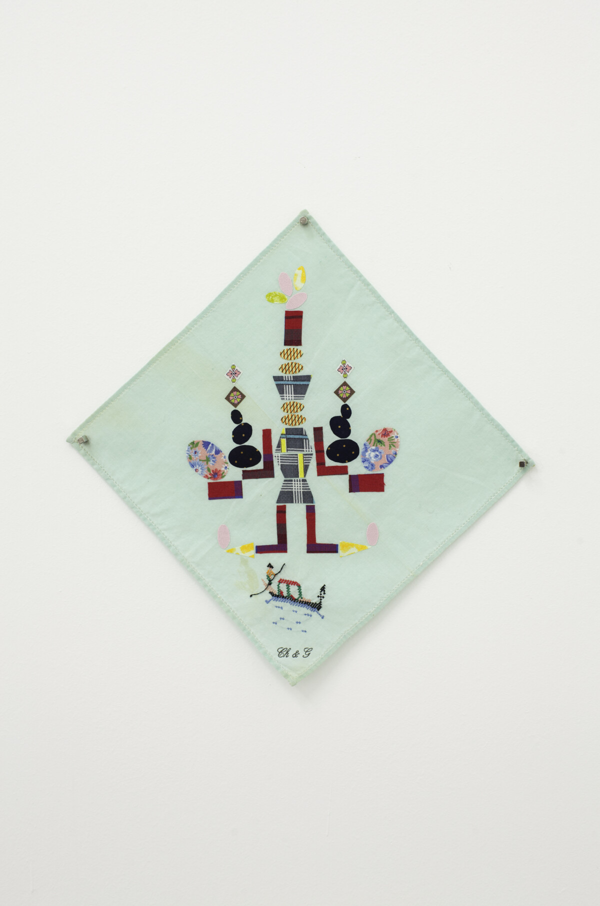 2021 Telas engomadas sobre pañuelos antiguos 21 x 21 cm