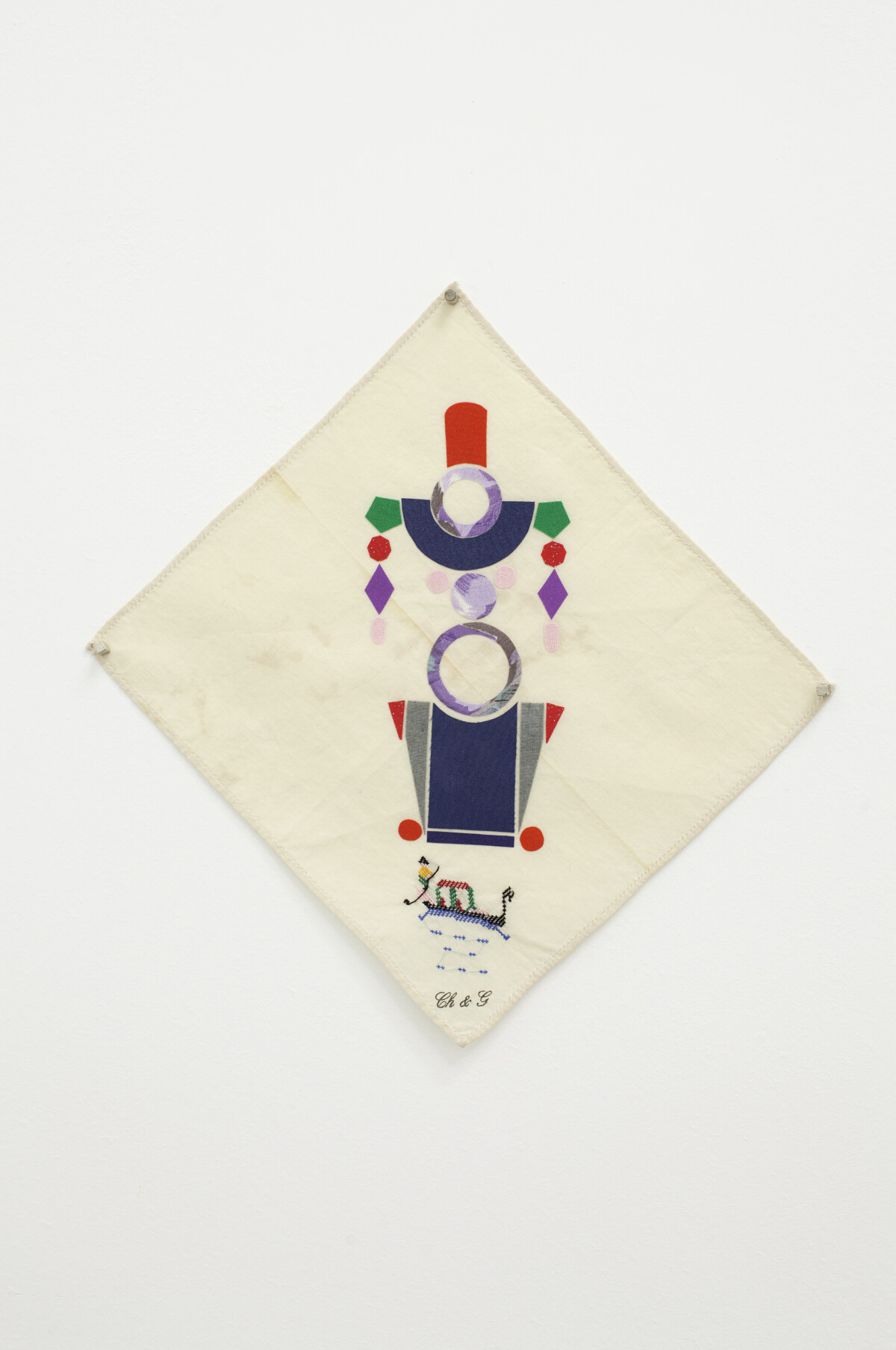 2021 Telas engomadas sobre pañuelos antiguos 21 x 21 cm