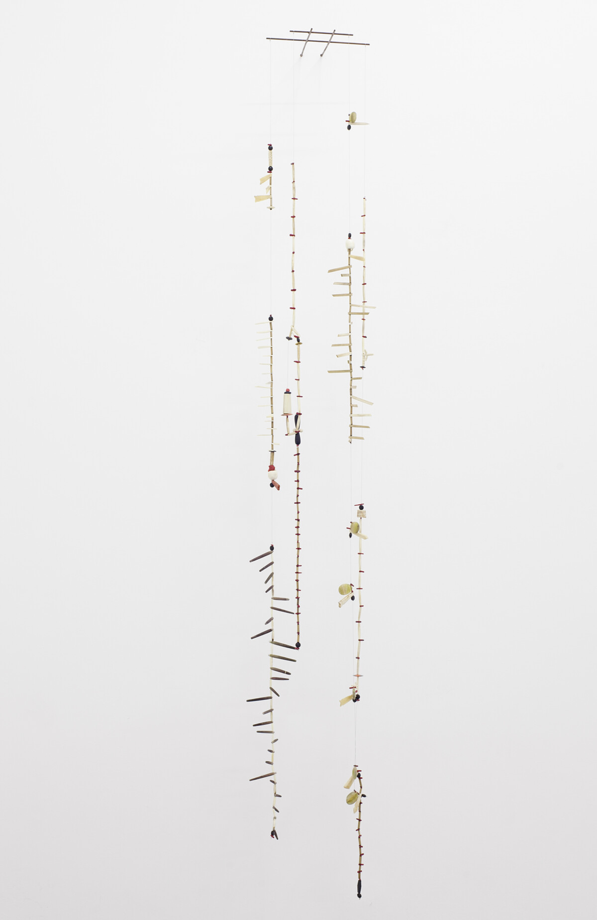 2018 Tallado y torneado en hueso de cabra, coral rojo y piedras semi preciosas 203 x 25 x 31 cm