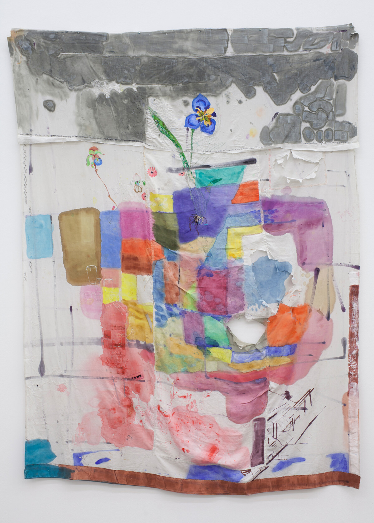 2021 Óleo, acrílico y bordado sobre tela de algodón 172 x 232 cm