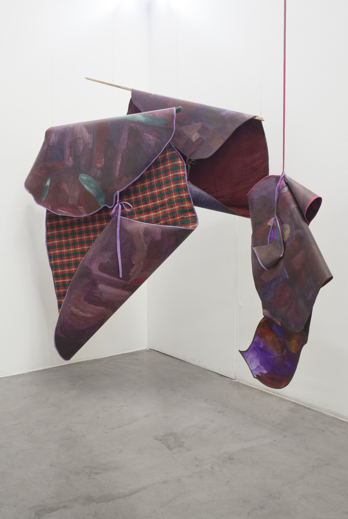 2021 Tinta, pastel tiza, óleo sobre papel cosido a máquina, cinta al bies, corderoy cosido a máquina, soporte de madera 230 x 230 cm (Disponible)