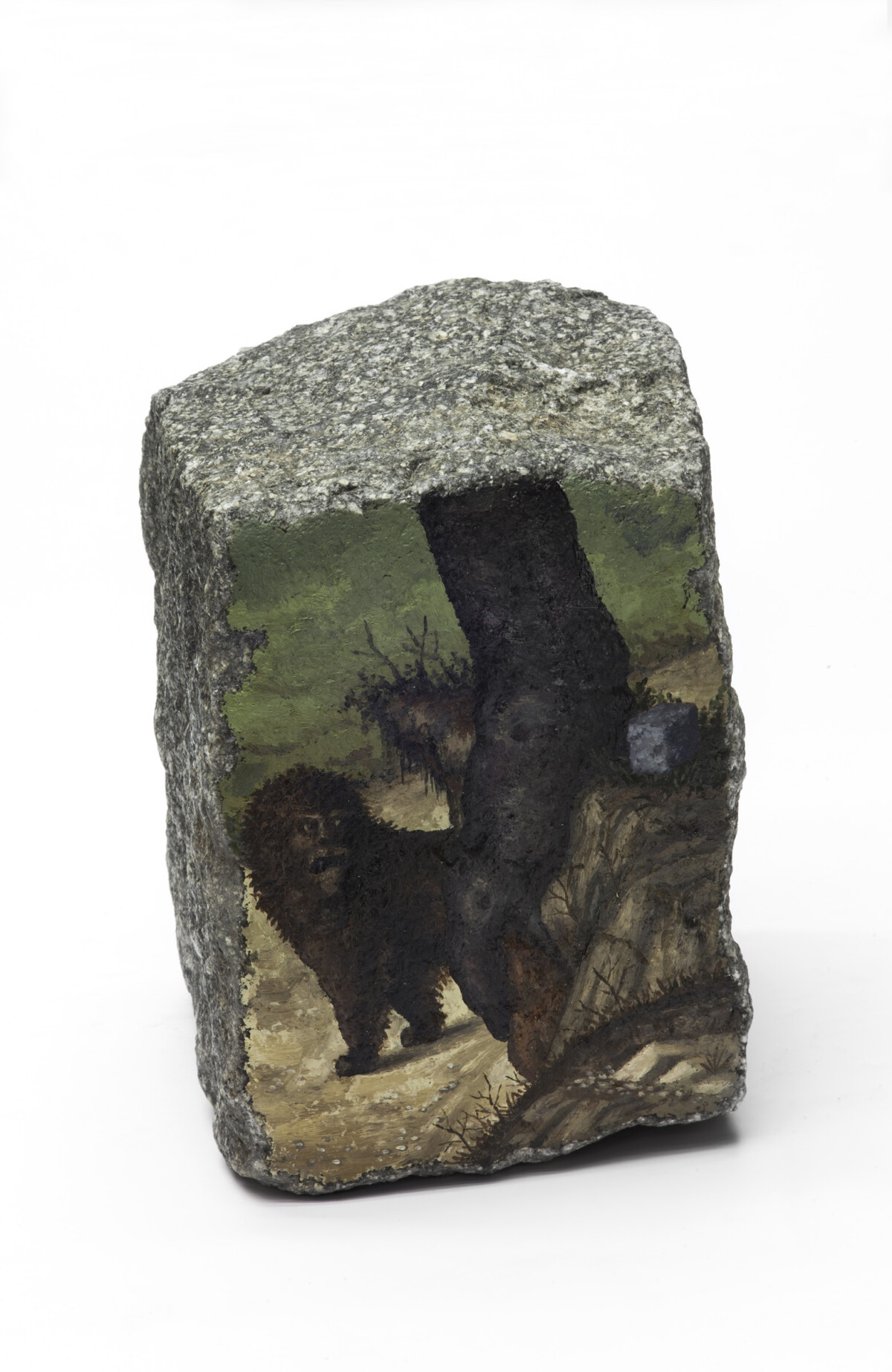 2020 Óleo y cera sobre piedra 16 x 15 x 20 cm (Disponible)